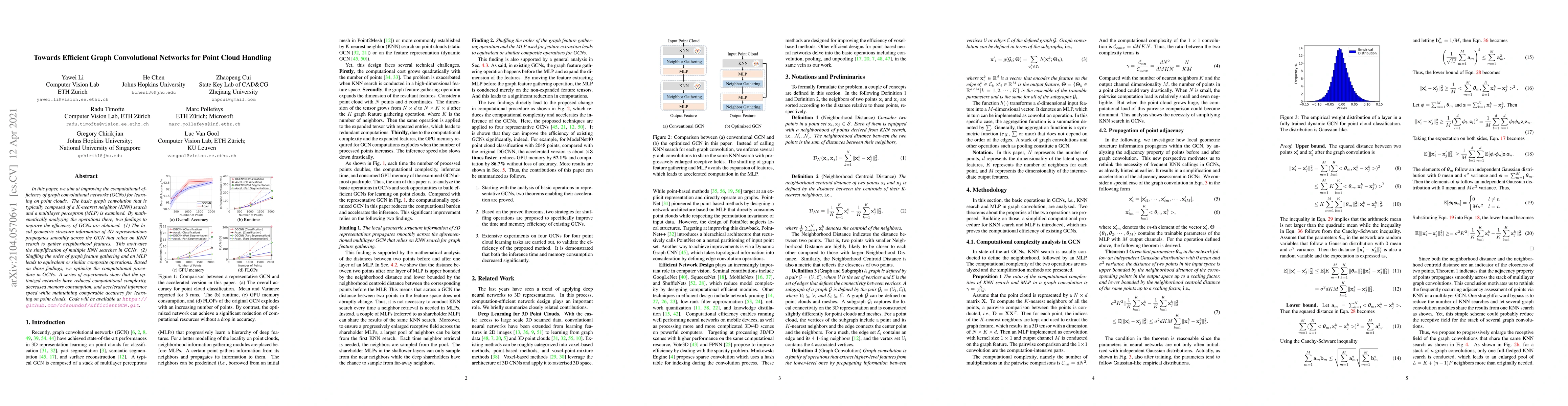 In this paper, we aim at improving the computational efficiency of graph convolutional networks (GCNs) for learning on point clouds. The basic graph convolution that is typically composed of a $K$-nearest neighbor (KNN) search and a multilayer perceptron (MLP) is examined. By mathematically analyzing the operations there, two findings to improve the efficiency of GCNs are obtained. (1) The local geometric structure information of 3D representations propagates smoothly across the GCN that relies on KNN search to gather neighborhood features. This motivates the simplification of multiple KNN searches in GCNs. (2) Shuffling the order of graph feature gathering and an MLP leads to equivalent or similar composite operations. Based on those findings, we optimize the computational procedure in GCNs. A series of experiments show that the optimized networks have reduced computational complexity, decreased memory consumption, and accelerated inference speed while maintaining comparable accuracy for learning on point clouds. Code will be available at \url{https://github.com/ofsoundof/EfficientGCN.git}.