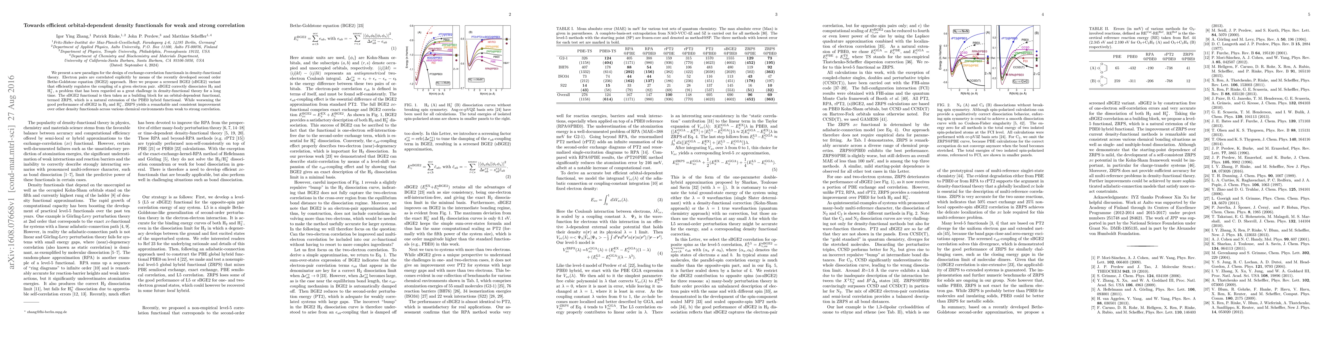 We present a new paradigm for the design of exchange-correlation functionals in density-functional theory. Electron pairs are correlated explicitly by means of the recently developed second order Bethe-Goldstone equation (BGE2) approach. Here we propose a screened BGE2 (sBGE2) variant that efficiently regulates the coupling of a given electron pair. sBGE2 correctly dissociates H$_2$ and H$_2^+$, a problem that has been regarded as a great challenge in density-functional theory for a long time. The sBGE2 functional is then taken as a building block for an orbital-dependent functional, termed ZRPS, which is a natural extension of the PBE0 hybrid functional. While worsening the good performance of sBGE2 in H$_2$ and H$_2^{+}$, ZRPS yields a remarkable and consistent improvement over other density functionals across various chemical environments from weak to strong correlation.