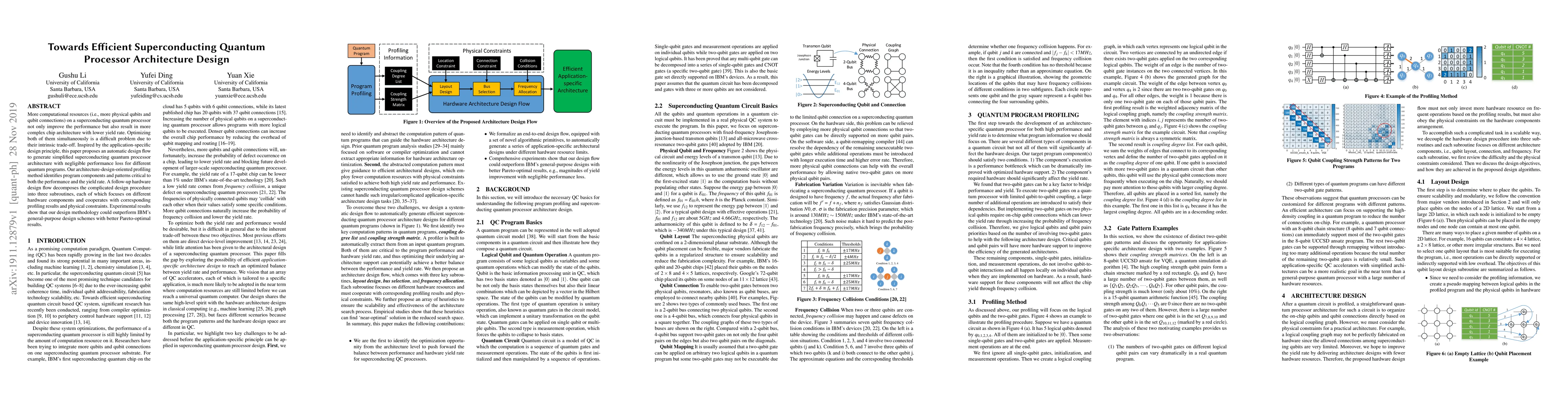 This paper proposes an automatic design flow for efficient superconducting quantum processor architectures that balances performance and yield rate. The method identifies critical program components and patterns, decomposing the design into subroutines for optimal hardware components, achieving better results than general-purpose schemes.