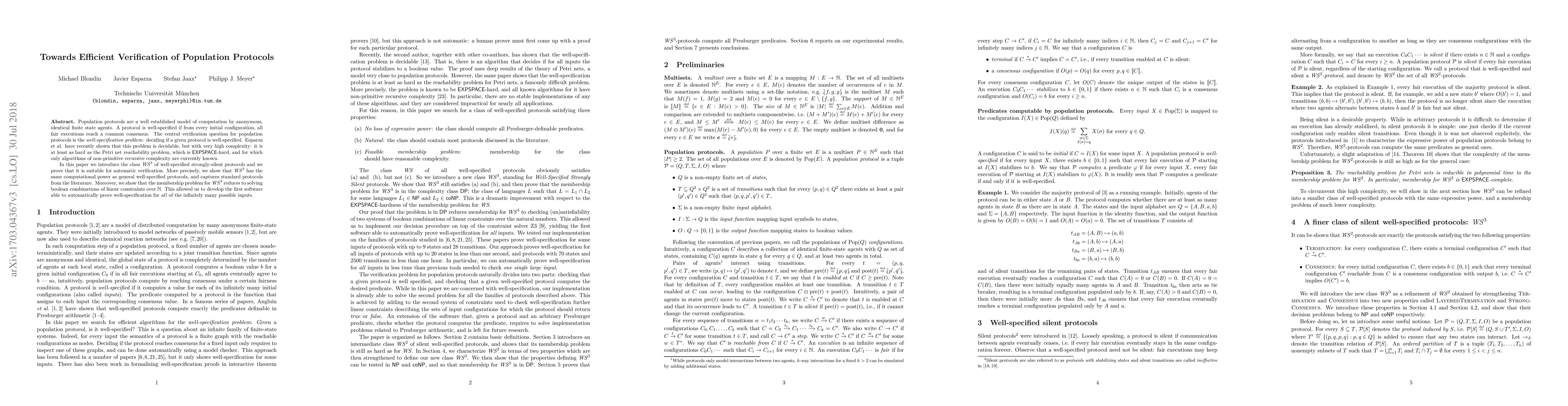 The paper introduces WS3, a class of well-specified population protocols with a membership problem of reasonable complexity (DP) and full expressiveness. It reduces the general well-specification problem for population protocols, which is EXPSPACE-hard, to a more tractable problem for WS3.