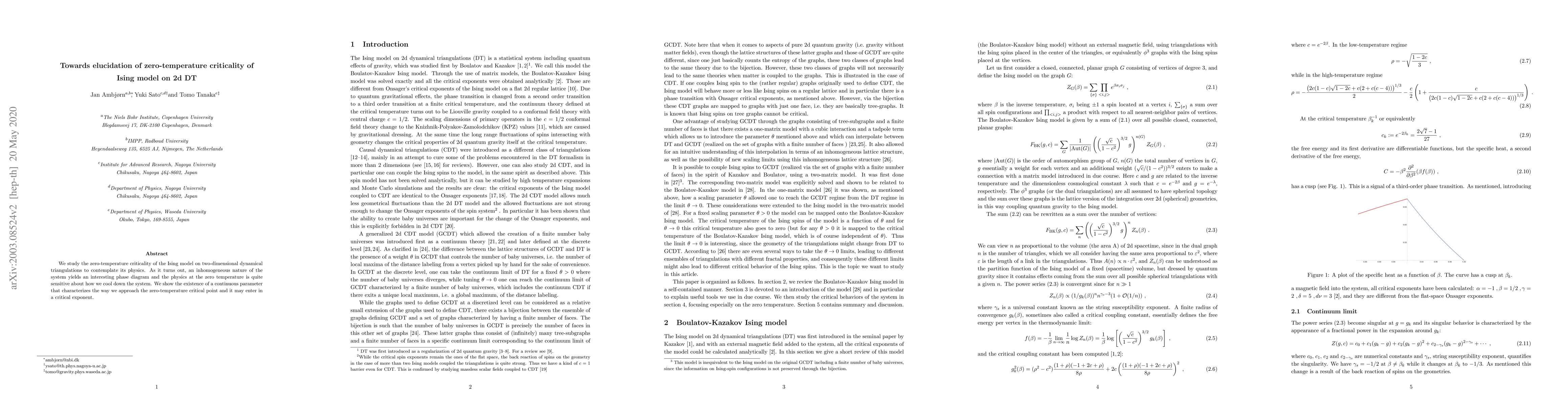 We study the zero-temperature criticality of the Ising model on two-dimensional dynamical triangulations to contemplate its physics. As it turns out, an inhomogeneous nature of the system yields an interesting phase diagram and the physics at the zero temperature is quite sensitive about how we cool down the system. We show the existence of a continuous parameter that characterizes the way we approach the zero-temperature critical point and it may enter in a critical exponent.