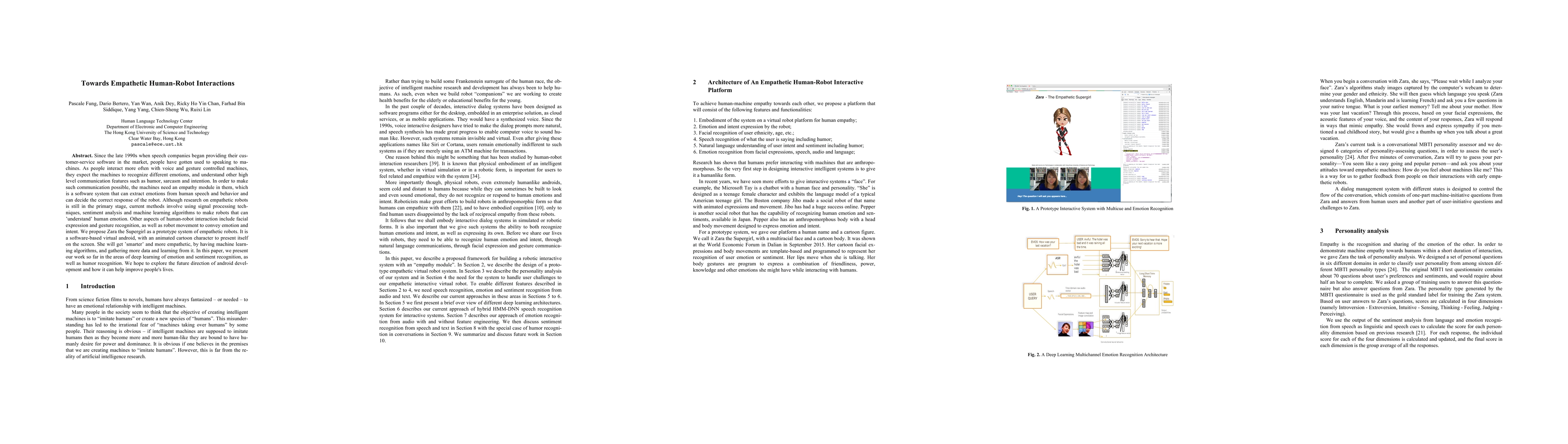 This paper explores developing empathetic human-robot interactions using signal processing, sentiment analysis, and machine learning. The prototype, Zara the Supergirl, aims to recognize human emotions and humor through deep learning, with the goal of enhancing androids' ability to understand and respond to human emotional cues.