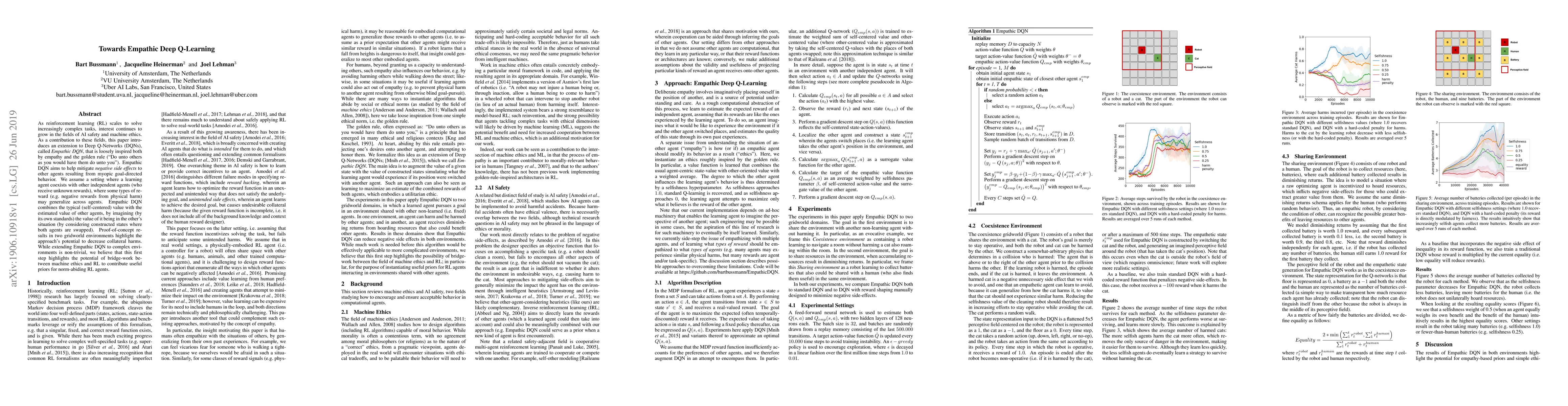 This paper proposes Empathic Deep Q-Learning, an extension of Deep Q-Networks aimed at reducing negative side effects on other agents in reinforcement learning tasks. It incorporates an estimation of other agents' value functions to mitigate collateral harms and shows promising results in gridworld environments.