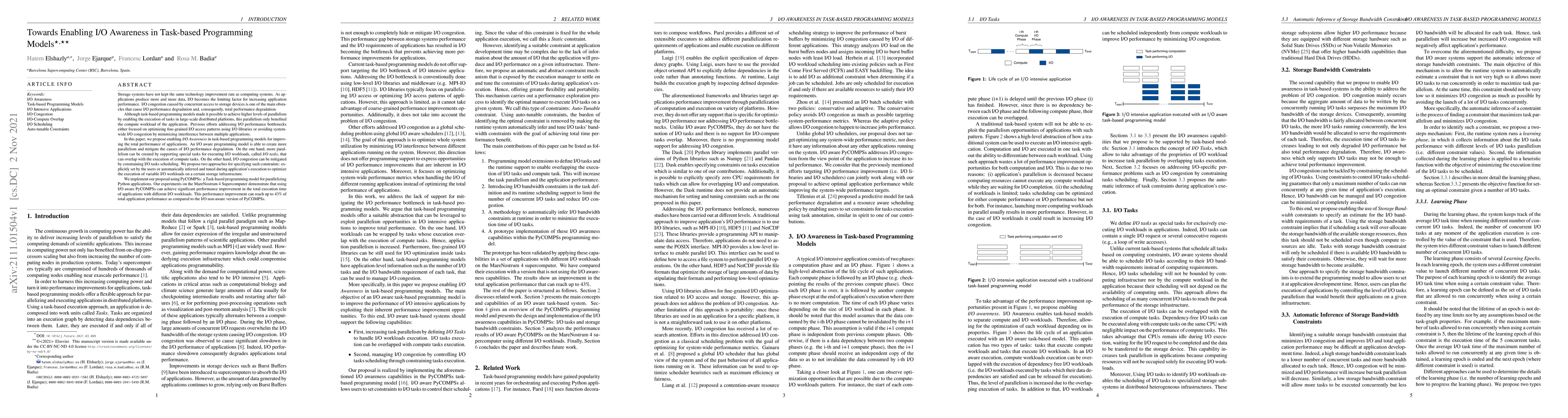 Researchers propose a new approach to improve I/O performance in task-based programming models, achieving up to 43% total performance improvement with an I/O aware model.