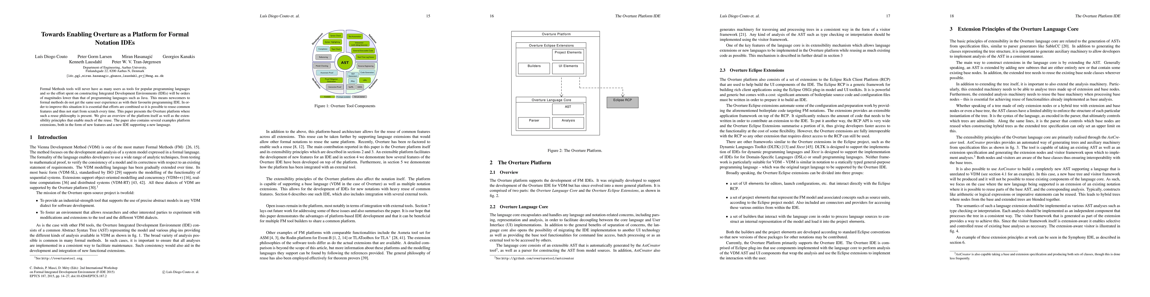 This paper introduces the Overture platform, designed to facilitate reuse of common features in Formal Methods IDEs, addressing the lack of user-friendly experiences for newcomers. It outlines the platform's extensibility principles and showcases examples of new features and a language-supporting IDE.
