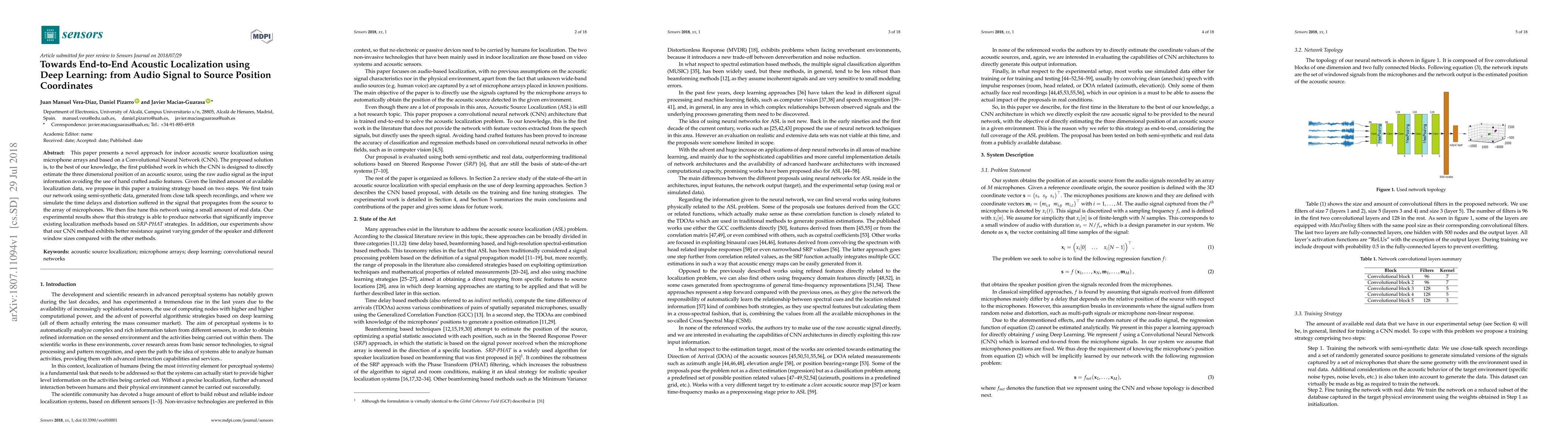 This paper presents a novel approach for indoor acoustic source localization using microphone arrays and based on a Convolutional Neural Network (CNN). The proposed solution is, to the best of our knowledge, the first published work in which the CNN is designed to directly estimate the three dimensional position of an acoustic source, using the raw audio signal as the input information avoiding the use of hand crafted audio features. Given the limited amount of available localization data, we propose in this paper a training strategy based on two steps. We first train our network using semi-synthetic data, generated from close talk speech recordings, and where we simulate the time delays and distortion suffered in the signal that propagates from the source to the array of microphones. We then fine tune this network using a small amount of real data. Our experimental results show that this strategy is able to produce networks that significantly improve existing localization methods based on \textit{SRP-PHAT} strategies. In addition, our experiments show that our CNN method exhibits better resistance against varying gender of the speaker and different window sizes compared with the other methods.
