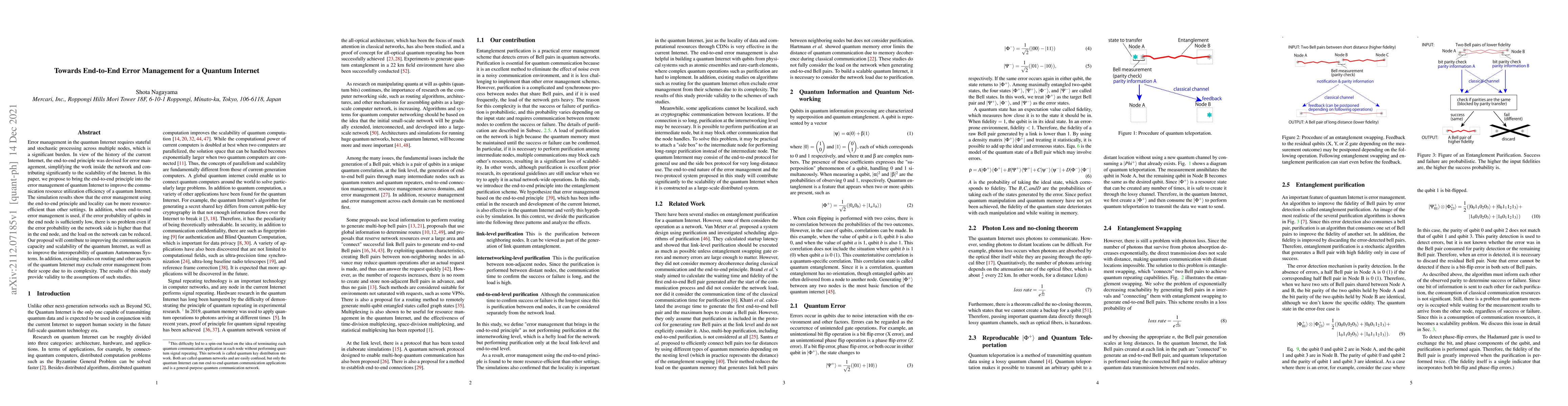 This paper proposes applying the end-to-end principle to error management in a quantum Internet to enhance resource efficiency and scalability. Simulation results indicate that this approach can outperform other methods, potentially reducing network load and improving communication capacity.