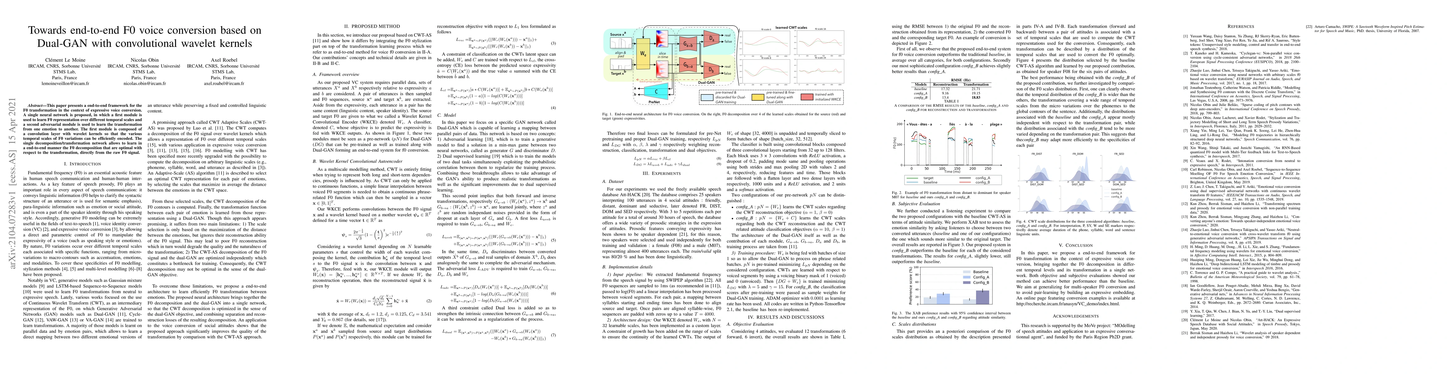 This paper proposes an end-to-end framework for F0 transformation in expressive voice conversion using a Dual-GAN with convolutional wavelet kernels. The network efficiently encodes temporal scales of F0 variations and learns optimal F0 decomposition directly from raw signals for emotion transformation.