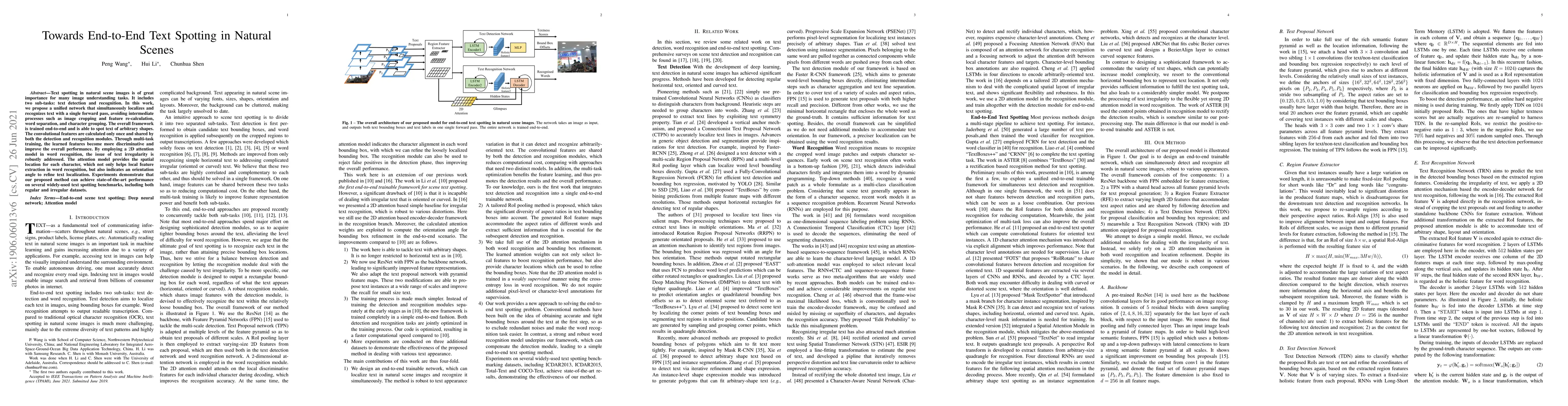 This paper proposes a unified network for end-to-end text spotting in natural scenes, simultaneously localizing and recognizing text in a single forward pass. It achieves state-of-the-art performance by training the framework end-to-end, sharing convolutional features, and employing a 2D attention model to robustly address text irregularity.