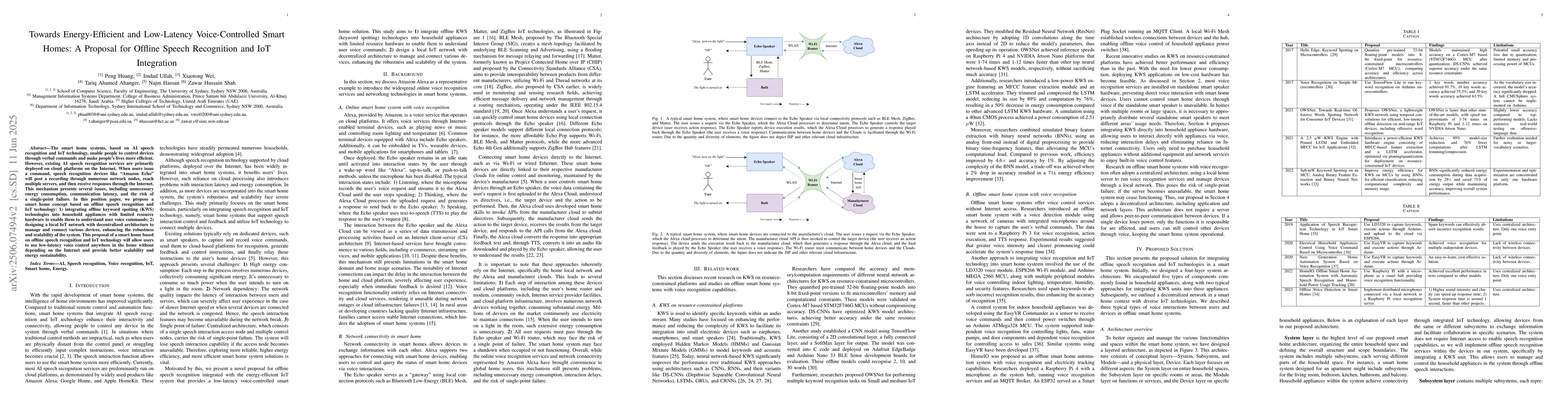A proposed smart home concept uses offline speech recognition and IoT technology to enable low-latency voice control without relying on the internet, improving energy efficiency and scalability.