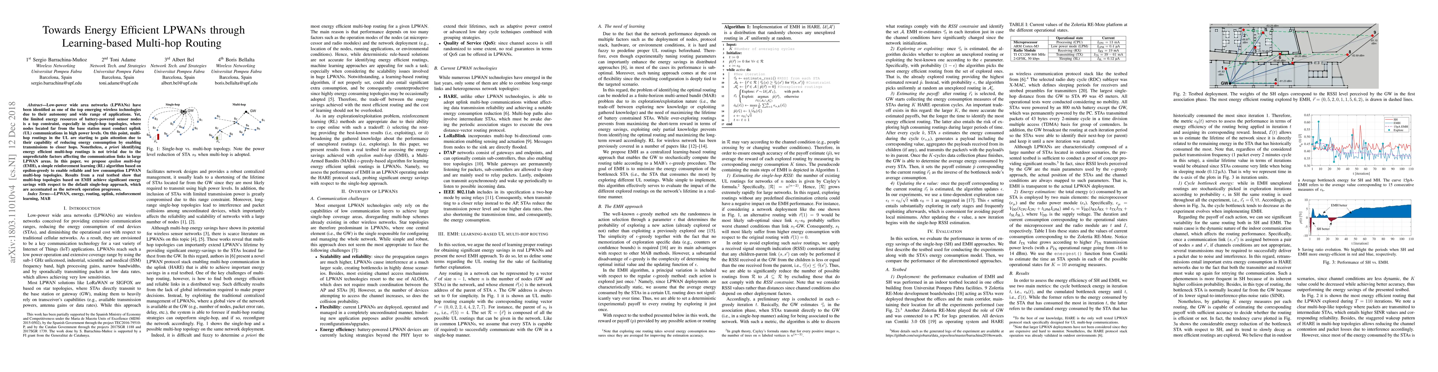 This paper proposes epsilon multi-hop (EMH), a reinforcement learning algorithm for energy-efficient multi-hop routing in low-power wide area networks (LPWANs). EMH achieves significant energy savings compared to single-hop approaches, especially over time as the network operates.