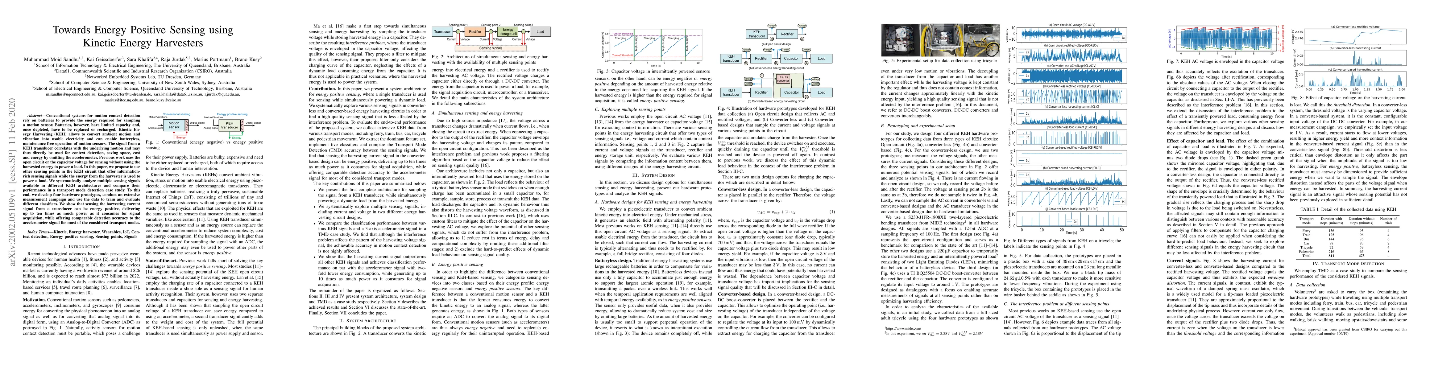 Conventional systems for motion context detection rely on batteries to provide the energy required for sampling a motion sensor. Batteries, however, have limited capacity and, once depleted, have to be replaced or recharged. Kinetic Energy Harvesting (KEH) allows to convert ambient motion and vibration into usable electricity and can enable batteryless, maintenance free operation of motion sensors. The signal from a KEH transducer correlates with the underlying motion and may thus directly be used for context detection, saving space, cost and energy by omitting the accelerometer. Previous work uses the open circuit or the capacitor voltage for sensing without using the harvested energy to power a load. In this paper, we propose to use other sensing points in the KEH circuit that offer information rich sensing signals while the energy from the harvester is used to power a load. We systematically analyse multiple sensing signals available in different KEH architectures and compare their performance in a transport mode detection case study. To this end, we develop four hardware prototypes, conduct an extensive measurement campaign and use the data to train and evaluate different classifiers. We show that sensing the harvesting current signal from a transducer can be energy positive, delivering up to ten times as much power as it consumes for signal acquisition, while offering comparable detection accuracy to the accelerometer signal for most of the considered transport modes.