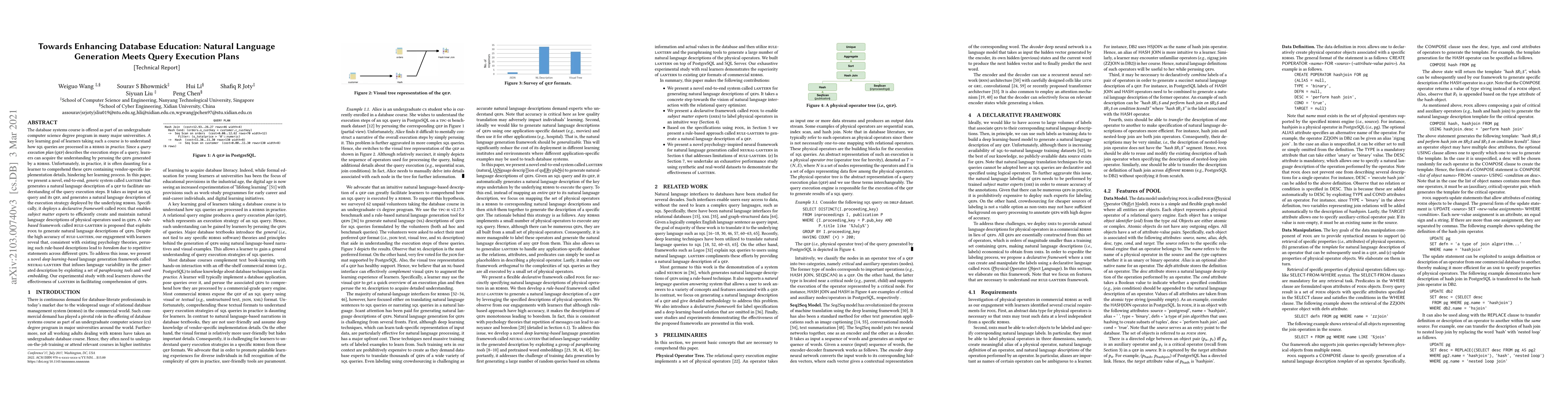Researchers created a system called Lantern that generates natural language descriptions of query execution plans to help learners understand database queries. The system uses a deep learning-based framework to generate more varied and engaging explanations, improving learner comprehension.