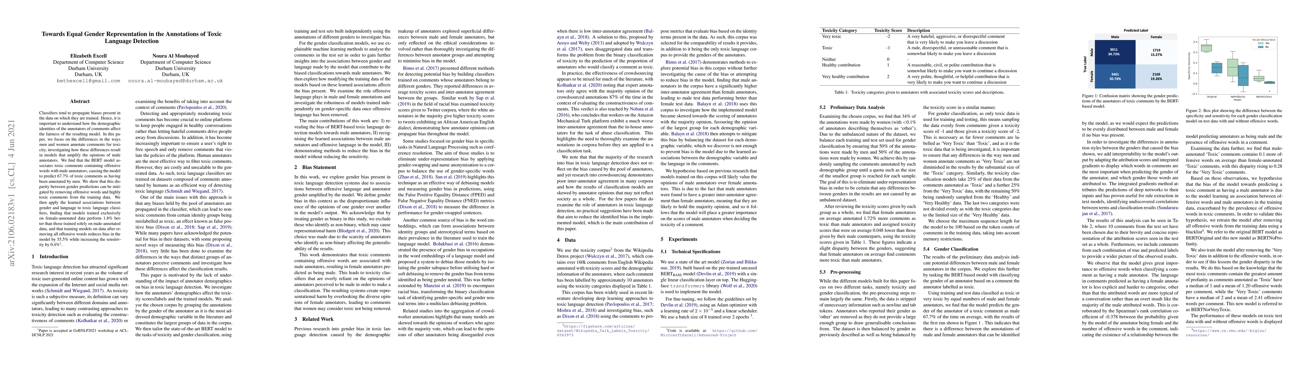 This paper investigates how gender biases in annotators affect toxicity detection models, finding that male annotators' offensive words skew model predictions. It demonstrates that removing offensive words and highly toxic comments reduces bias, leading to more balanced models.