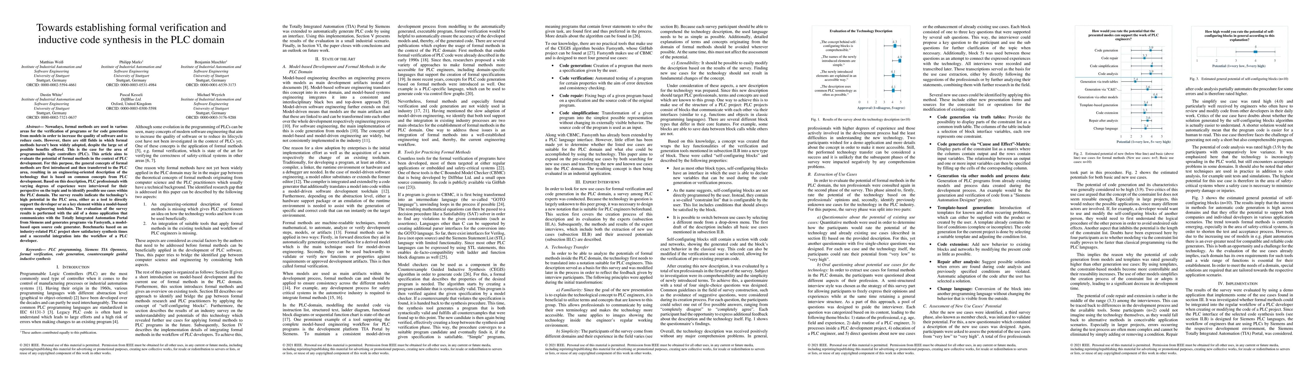 This research paper explores the potential of formal verification and inductive code synthesis for programmable logic controllers (PLC), finding high interest among PLC professionals and promising results in industry-related projects.