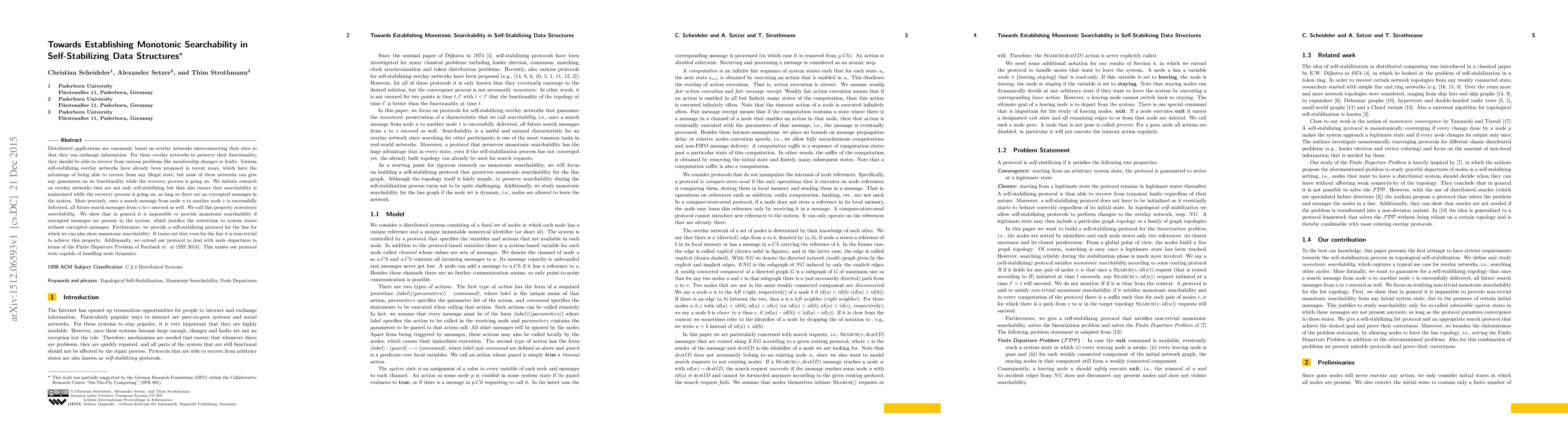 This paper explores the development of self-stabilizing overlay networks that maintain monotonic searchability during recovery, ensuring that once a search message is successfully delivered, all subsequent searches will also succeed, provided no corrupted messages are present. The authors demonstrate the impossibility of achieving this property in the presence of corrupted messages and present a protocol for a line network that successfully implements monotonic searchability, extending it to handle node departures.