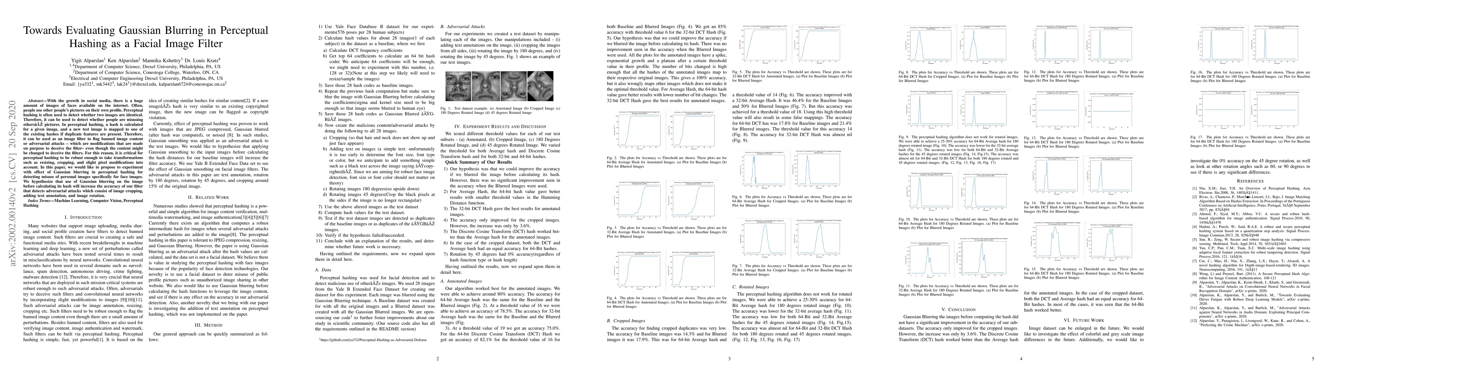 This paper explores the use of Gaussian blurring in perceptual hashing for detecting misuse of personal facial images on social media. It hypothesizes that applying Gaussian blurring before hash calculation can enhance the robustness of the hashing method, thereby improving detection of adversarial attacks like cropping, text addition, and rotation.