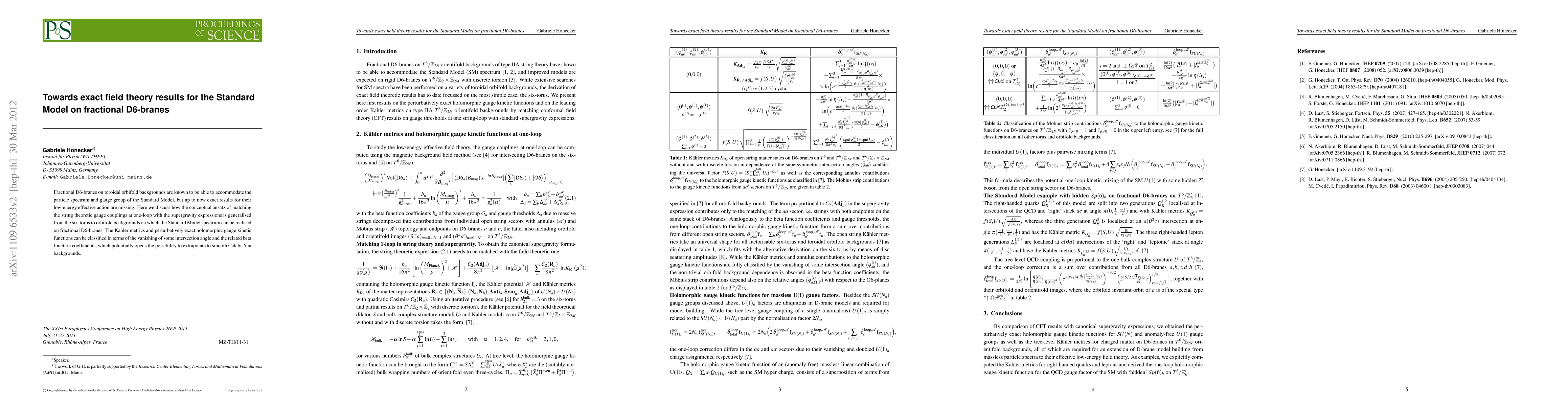 This paper explores the exact low-energy effective action for the Standard Model on fractional D6-branes within toroidal orbifold backgrounds. It generalizes the matching of string theoretic gauge couplings to supergravity expressions, classifying Kaehler metrics and holomorphic gauge kinetic functions based on specific intersection angles and beta function coefficients, potentially extending to smooth Calabi-Yau backgrounds.