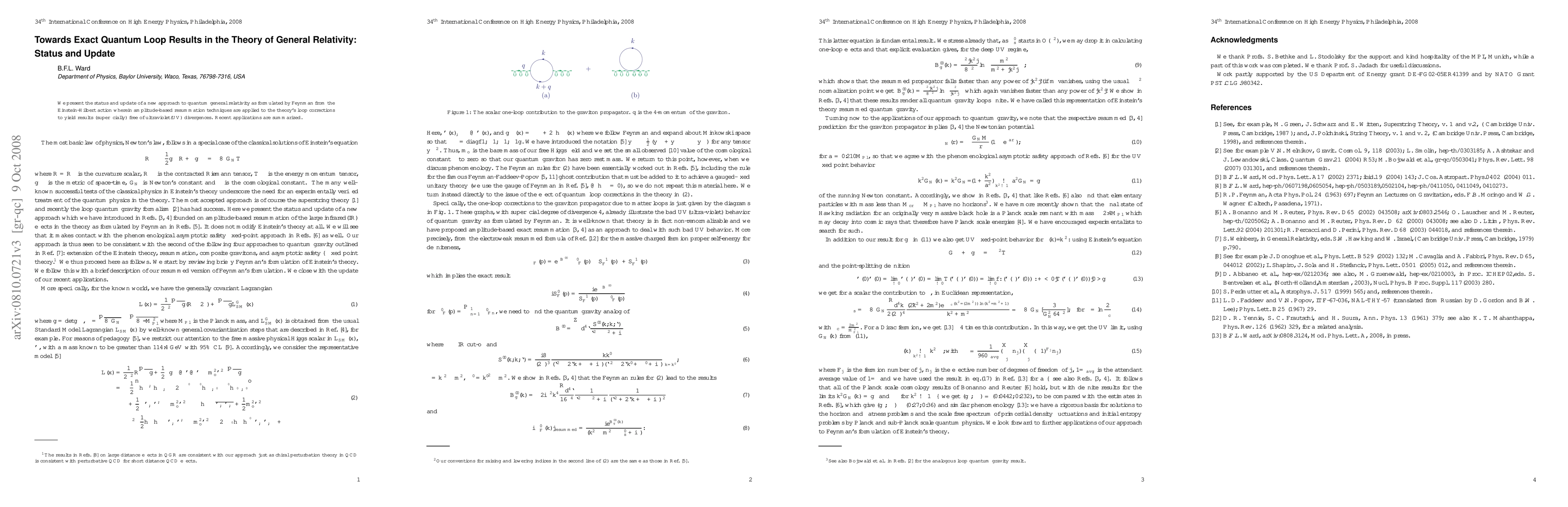 Researchers update a quantum general relativity approach that uses amplitude-based resummation to remove ultraviolet divergences from loop corrections in the Einstein-Hilbert action, achieving superficially UV-divergence-free results.