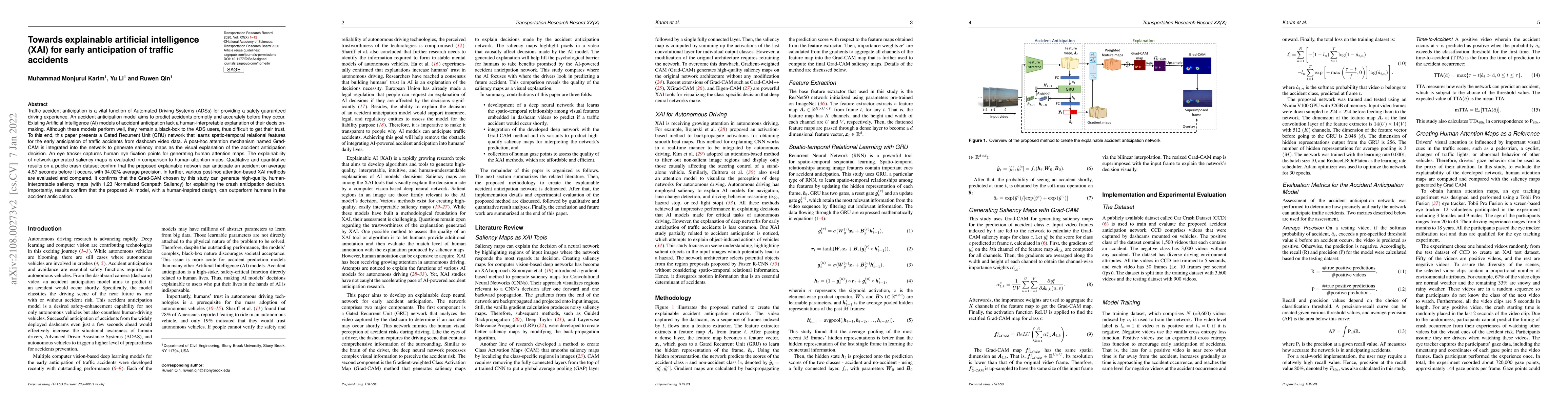 This paper presents a Gated Recurrent Unit (GRU) network with Grad-CAM for early anticipation of traffic accidents using dashcam video data, aiming to provide human-interpretable explanations. The model achieves 94.02% precision in accident anticipation 4.57 seconds in advance, outperforming human anticipation.