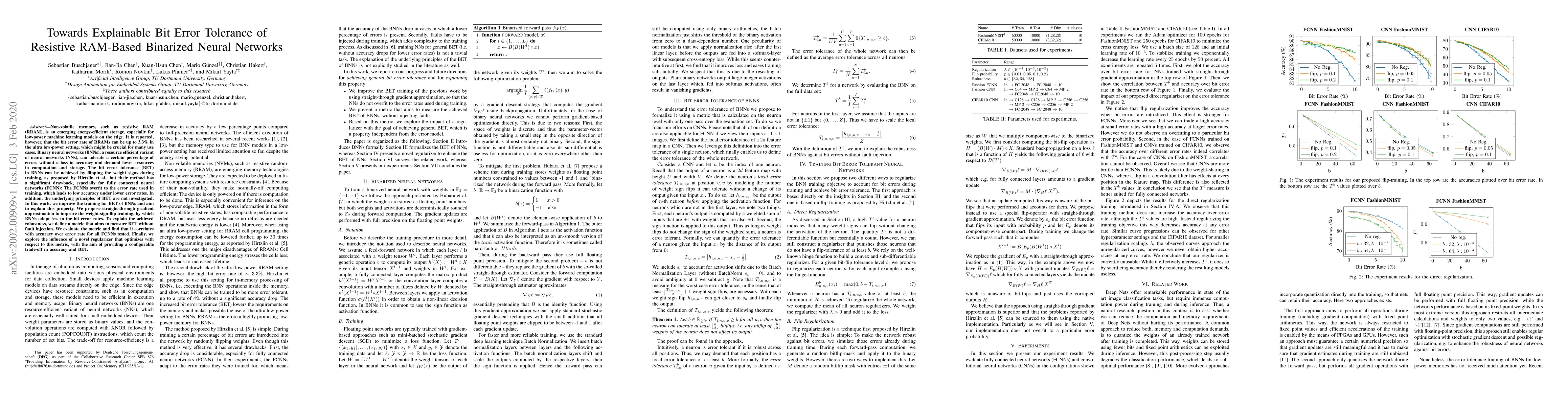 This paper investigates the bit error tolerance (BET) of binary neural networks (BNNs) deployed in resistive RAM (RRAM) environments, proposing a method to improve training that minimizes overfitting to bit error rates. The authors introduce a novel regularizer to balance accuracy and BET, and develop a metric to evaluate BET without fault injection, finding it correlates with accuracy across tested fully connected neural networks.