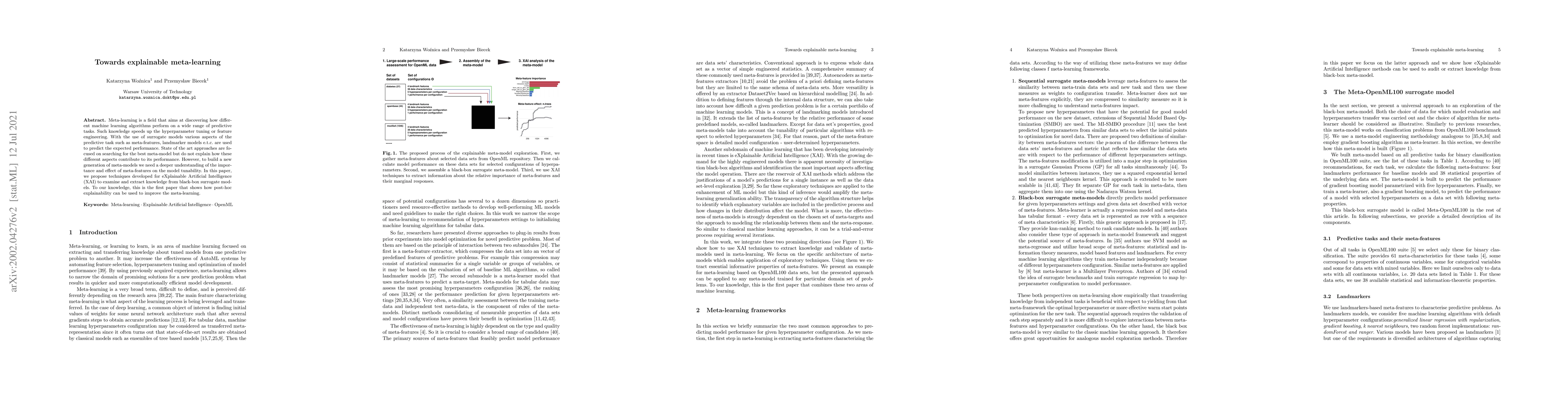 This paper proposes techniques for explainable meta-learning to understand how different meta-features contribute to the performance of meta-models. It introduces methods from XAI to provide post-hoc explanations, aiming to improve the interpretability and tunability of meta-learning algorithms.