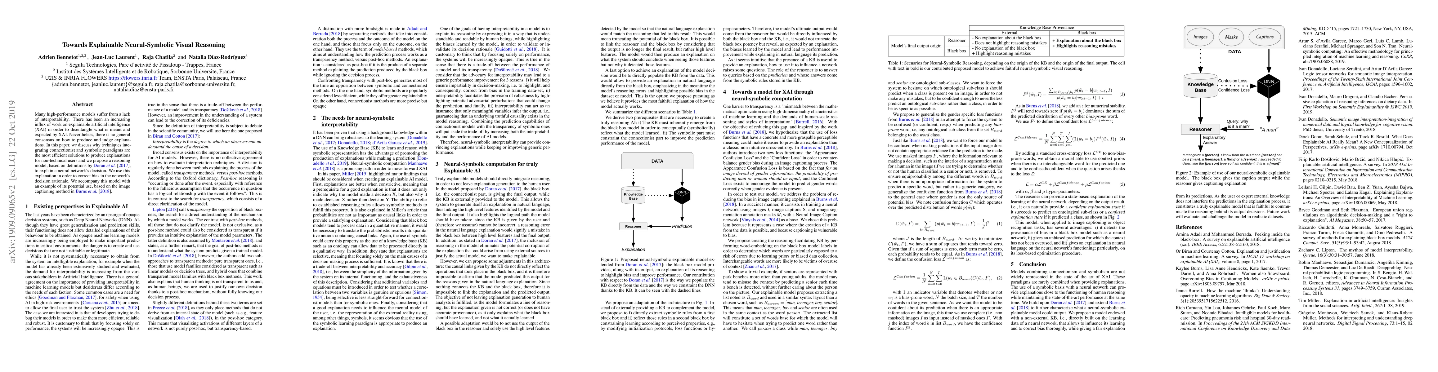 Many high-performance models suffer from a lack of interpretability. There has been an increasing influx of work on explainable artificial intelligence (XAI) in order to disentangle what is meant and expected by XAI. Nevertheless, there is no general consensus on how to produce and judge explanations. In this paper, we discuss why techniques integrating connectionist and symbolic paradigms are the most efficient solutions to produce explanations for non-technical users and we propose a reasoning model, based on definitions by Doran et al. [2017] (arXiv:1710.00794) to explain a neural network's decision. We use this explanation in order to correct bias in the network's decision rationale. We accompany this model with an example of its potential use, based on the image captioning method in Burns et al. [2018] (arXiv:1803.09797).