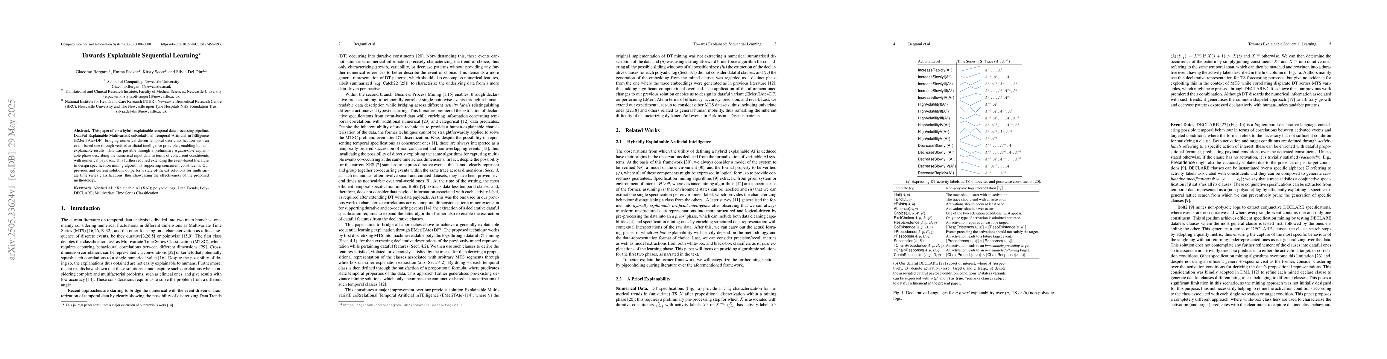 The paper introduces a hybrid explainable temporal data processing pipeline, EMeriTAte+, which bridges numerical-driven temporal data classification with an event-based approach using verified AI principles, enabling human-explainable results.