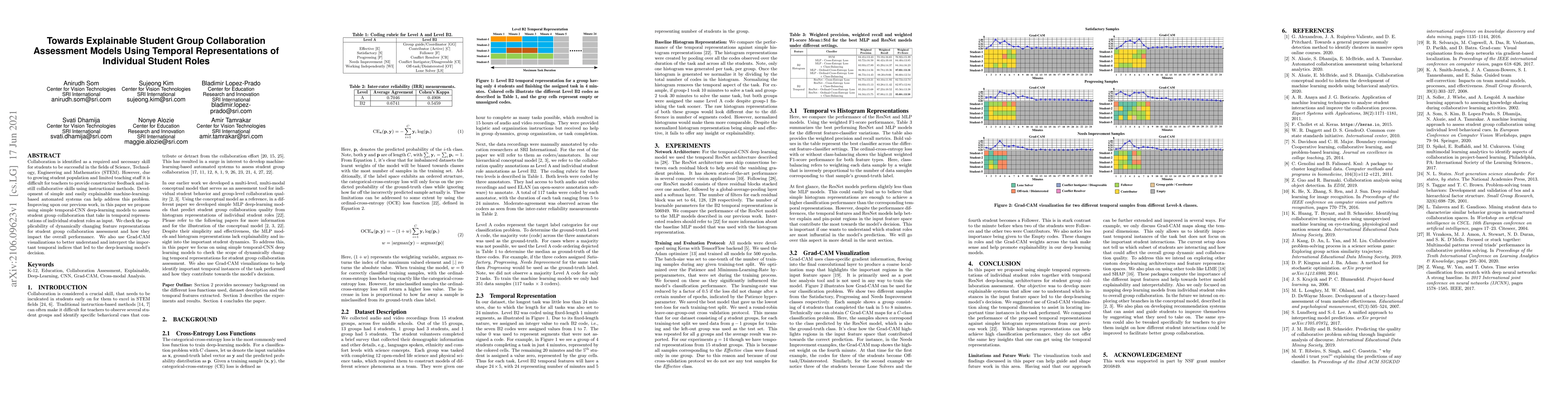 This paper proposes temporal-CNN models for assessing student group collaboration in STEM fields, using dynamic temporal representations of individual student roles. It evaluates the model's performance and uses Grad-CAM visualizations to provide interpretable insights into the model's decision-making process.