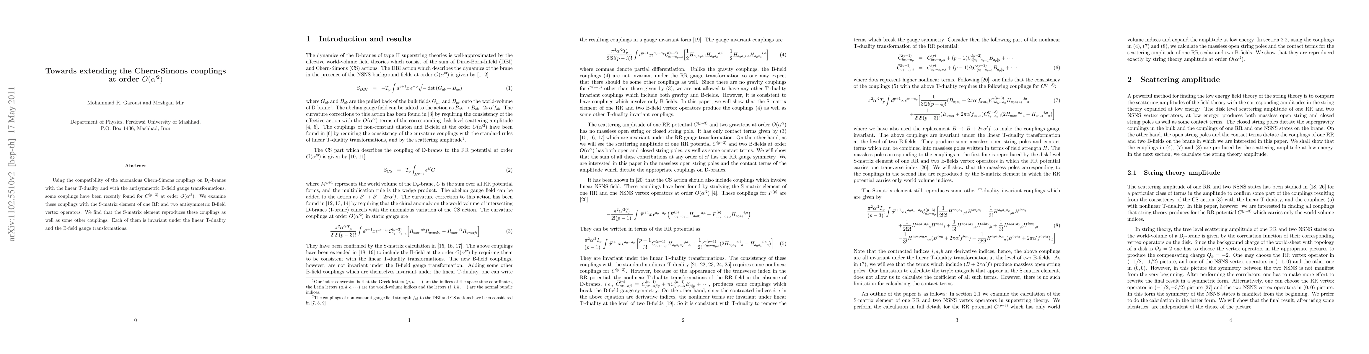 This paper identifies new anomalous Chern-Simons couplings at order $O(\alpha'^2)$ for $C^{(p-3)}$ on D$_p$-branes, confirming their validity through S-matrix calculations involving RR and B-field vertex operators, and demonstrates their invariance under T-duality and B-field gauge transformations.