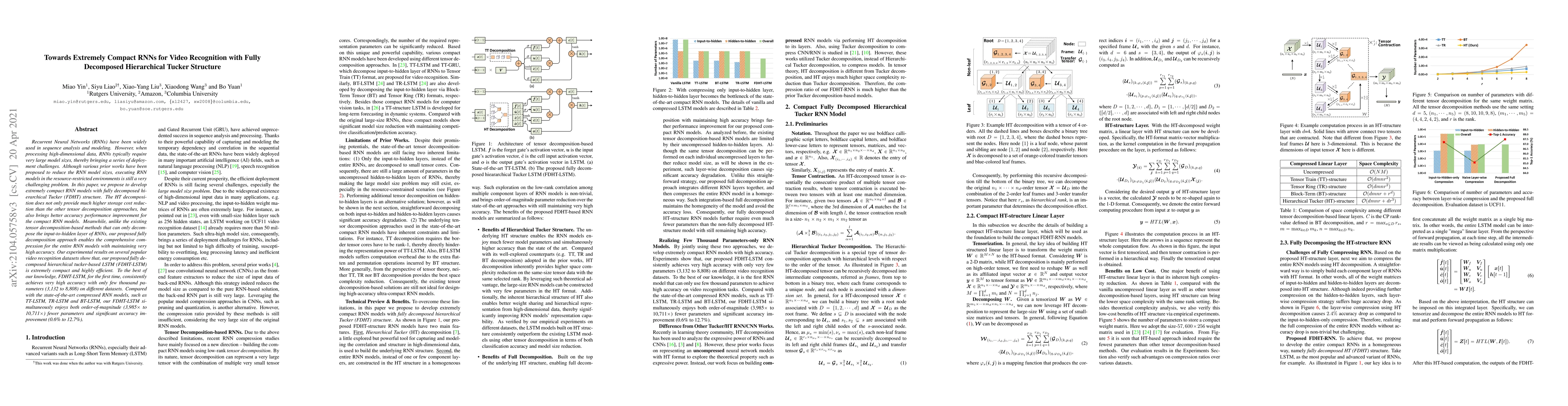 This paper proposes a fully decomposed hierarchical Tucker structure (FDHT) for extremely compact RNNs to address the challenges of deploying large RNN models in resource-restricted environments. The FDHT-LSTM achieves significant parameter reduction and maintains high accuracy, outperforming other compressed RNN models by orders of magnitude.