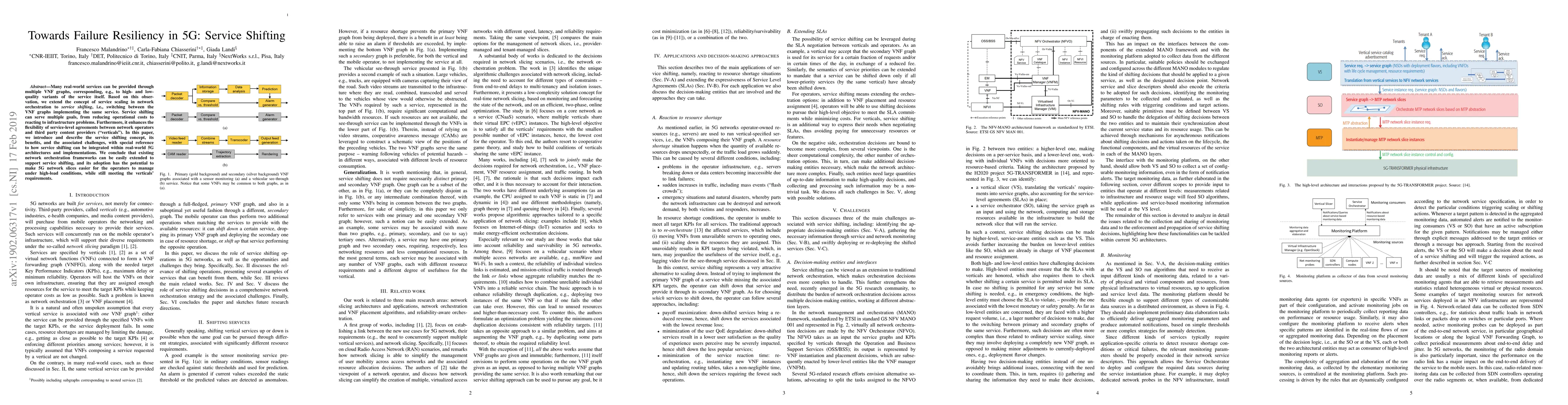 This paper introduces the concept of service shifting in 5G network orchestration, where VNF graphs are switched to provide the same service, enhancing flexibility and reducing costs. It discusses the integration of service shifting in 5G architectures, suggesting it can improve management of network slices under high load while meeting provider requirements.