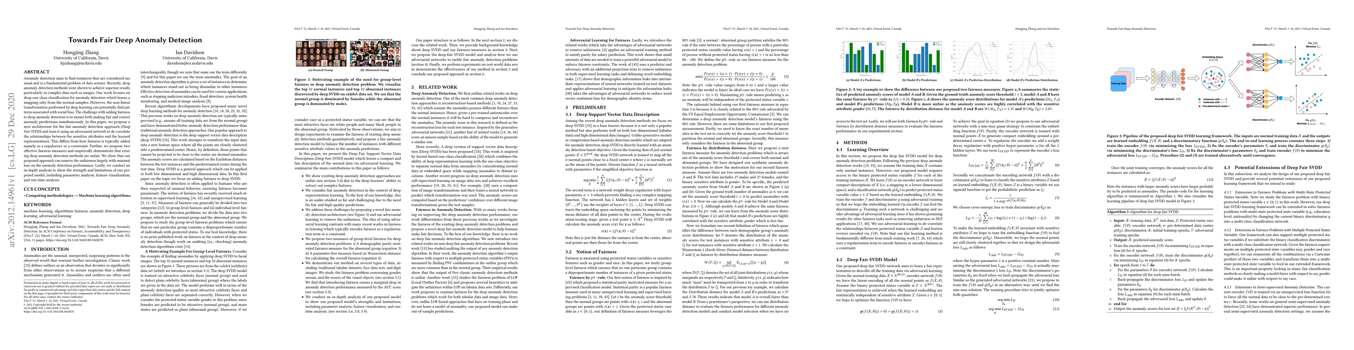 This paper introduces Deep Fair SVDD, a new architecture for fair deep anomaly detection using adversarial training to de-correlate sensitive attributes from learned representations, demonstrating its effectiveness in reducing unfairness with minimal impact on anomaly detection performance.