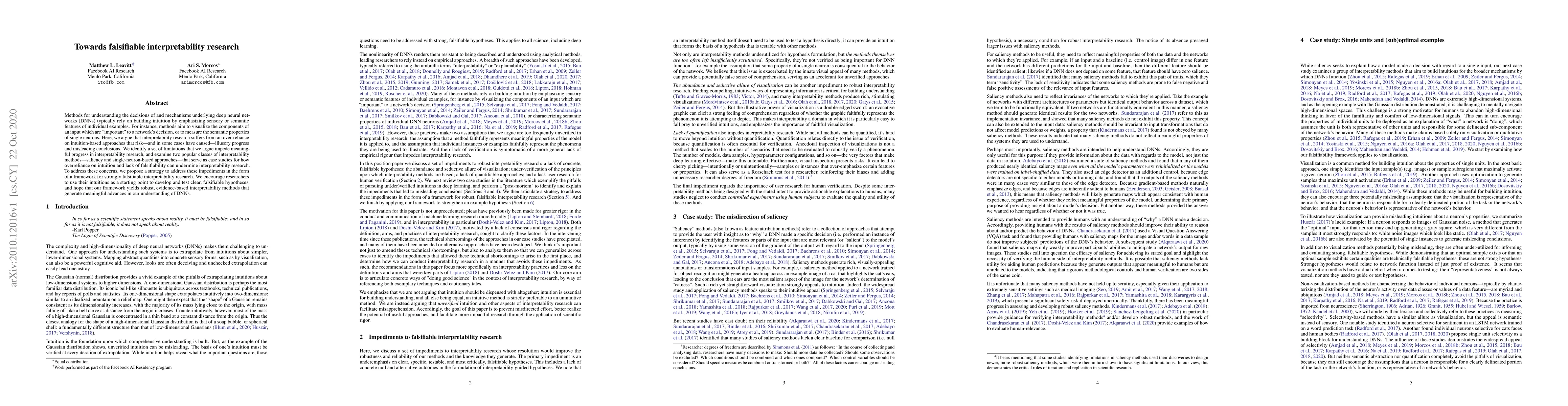This paper critiques the current reliance on intuition-based methods in deep neural network interpretability research, arguing that it leads to misleading conclusions. It proposes a framework for falsifiable interpretability research to generate robust, evidence-based methods that advance our understanding of DNNs.