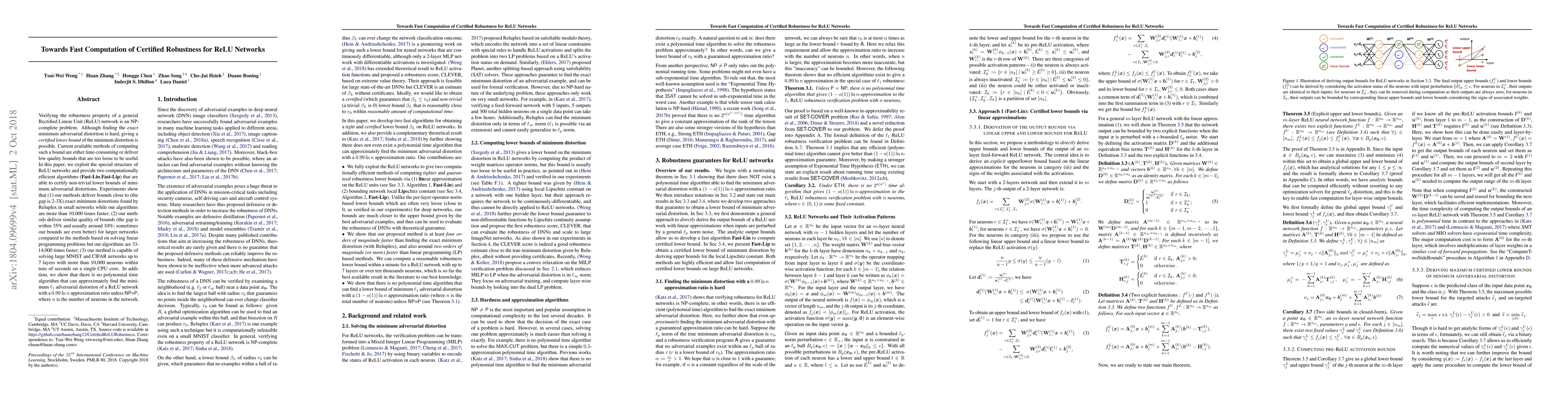 Researchers developed two fast algorithms to compute certified lower bounds for the robustness of ReLU networks, achieving 10,000x speedup while maintaining similar accuracy to existing methods.