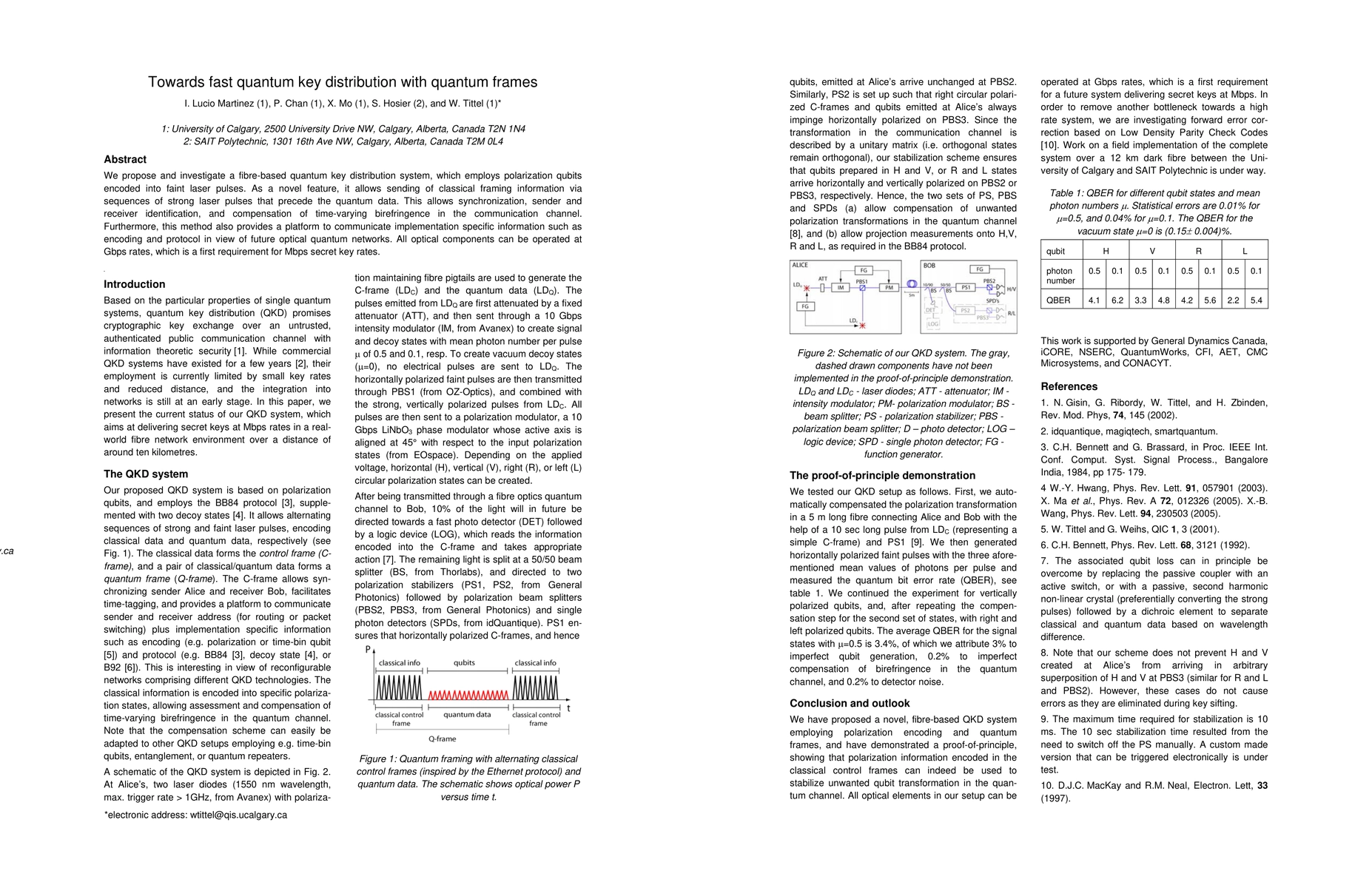 This paper proposes a fibre-based quantum key distribution system using polarization qubits with classical framing information sent via strong laser pulses for synchronization and compensation of birefringence, enabling Gbps rates for future optical quantum networks.