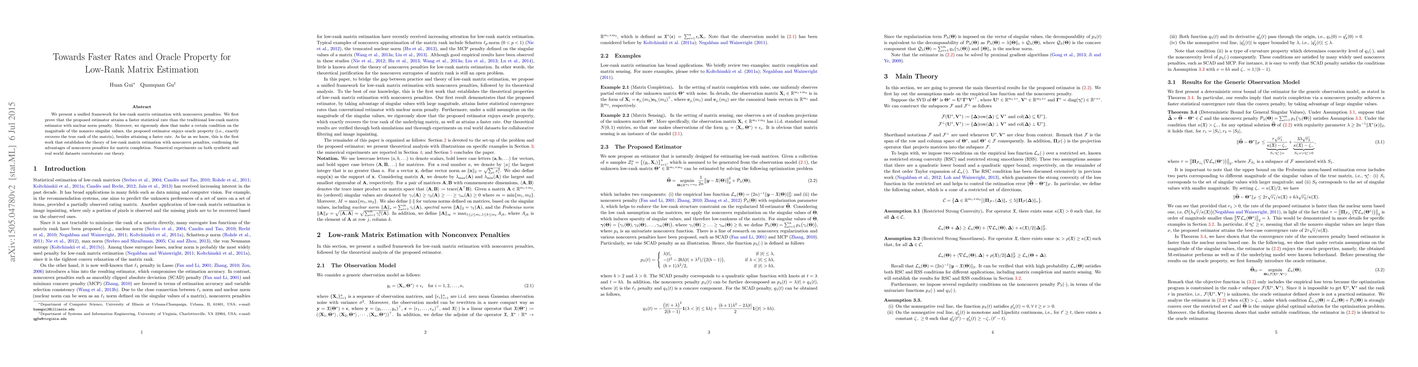 This paper introduces a novel framework for low-rank matrix estimation using nonconvex penalties, demonstrating faster statistical rates compared to traditional nuclear norm methods. It also proves the estimator's oracle property under specific conditions, marking the first theoretical work on nonconvex penalties in this context, supported by numerical experiments.