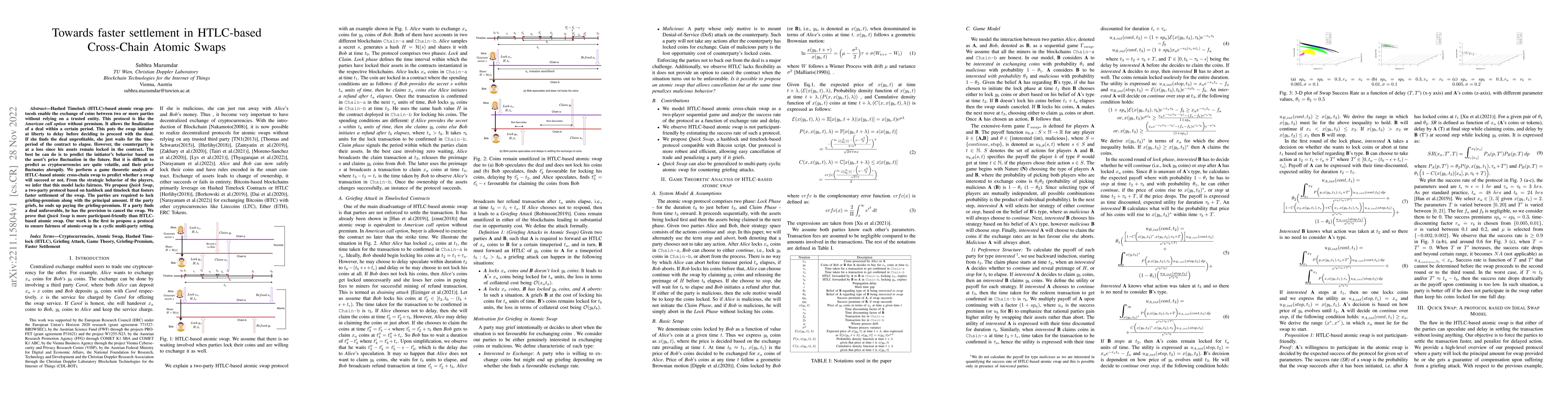 Hashed Timelock (HTLC)-based atomic swap protocols enable the exchange of coins between two or more parties without relying on a trusted entity. This protocol is like the American call option without premium. It allows the finalization of a deal within a certain period. This puts the swap initiator at liberty to delay before deciding to proceed with the deal. If she finds the deal unprofitable, she just waits for the time-period of the contract to elapse. However, the counterparty is at a loss since his assets remain locked in the contract. The best he can do is to predict the initiator's behavior based on the asset's price fluctuation in the future. But it is difficult to predict as cryptocurrencies are quite volatile, and their price fluctuates abruptly. We perform a game theoretic analysis of HTLC-based atomic cross-chain swap to predict whether a swap will succeed or not. From the strategic behavior of the players, we infer that this model lacks fairness. We propose Quick Swap, a two-party protocol based on hashlock and timelock that fosters faster settlement of the swap. The parties are required to lock griefing-premium along with the principal amount. If the party griefs, he ends up paying the griefing-premium. If a party finds a deal unfavorable, he has the provision to cancel the swap. We prove that Quick Swap is more participant-friendly than HTLC-based atomic swap. Our work is the first to propose a protocol to ensure fairness of atomic-swap in a cyclic multi-party setting.
