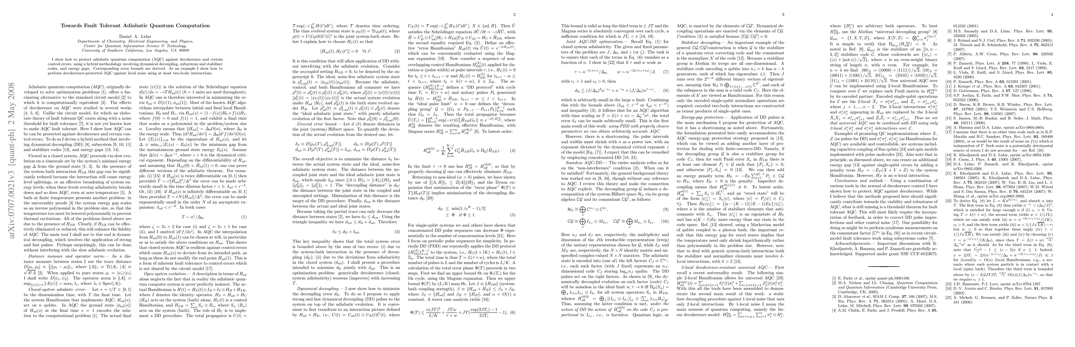 This paper proposes a hybrid methodology to protect adiabatic quantum computation against decoherence and control errors, utilizing dynamical decoupling, subsystem and stabilizer codes, and energy gaps, with derived error bounds. An example is provided for decoherence-protected AQC against local noise using only two-body interactions.