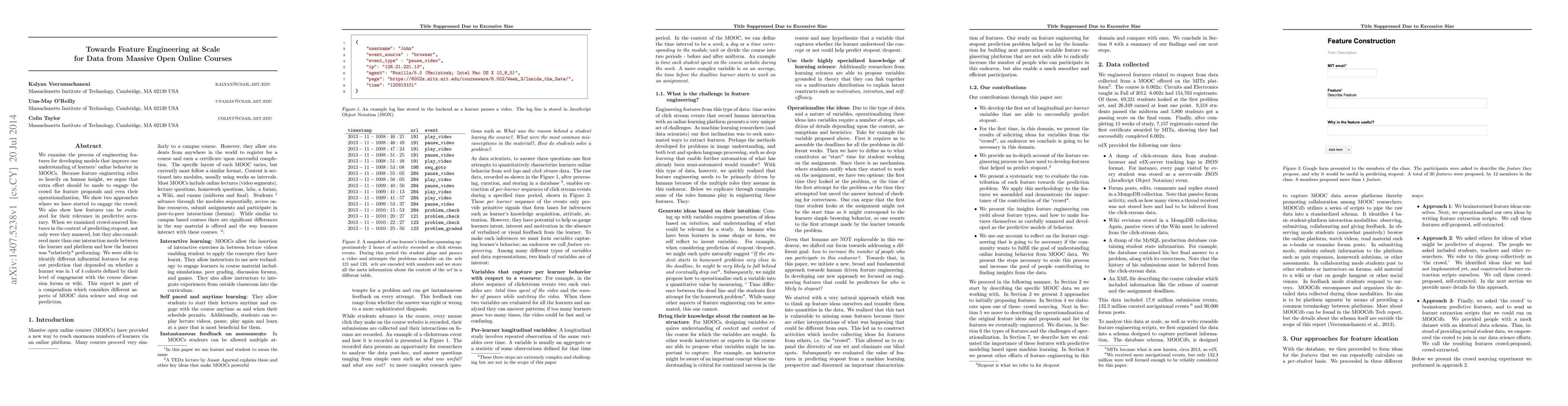 We examine the process of engineering features for developing models that improve our understanding of learners' online behavior in MOOCs. Because feature engineering relies so heavily on human insight, we argue that extra effort should be made to engage the crowd for feature proposals and even their operationalization. We show two approaches where we have started to engage the crowd. We also show how features can be evaluated for their relevance in predictive accuracy. When we examined crowd-sourced features in the context of predicting stopout, not only were they nuanced, but they also considered more than one interaction mode between the learner and platform and how the learner was relatively performing. We were able to identify different influential features for stop out prediction that depended on whether a learner was in 1 of 4 cohorts defined by their level of engagement with the course discussion forum or wiki. This report is part of a compendium which considers different aspects of MOOC data science and stop out prediction.