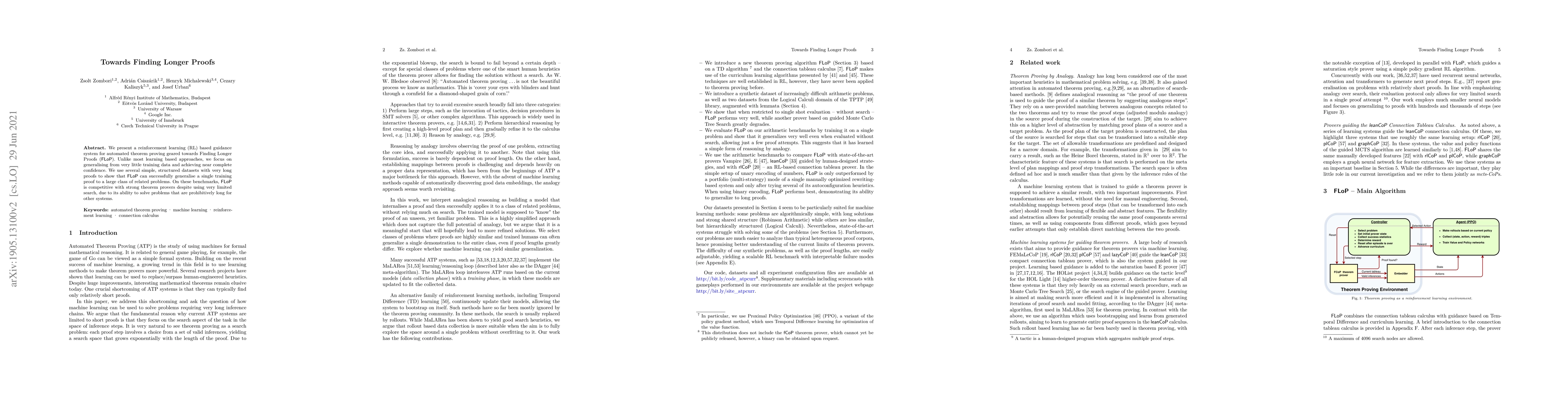 This research introduces a reinforcement learning system, FLoP, designed to discover longer proofs in automated theorem proving. Despite using minimal training data and limited search, FLoP performs competitively with strong theorem provers by generalizing from single training proofs to a wide range of related problems, effectively tackling lengthy proofs inaccessible to other systems.