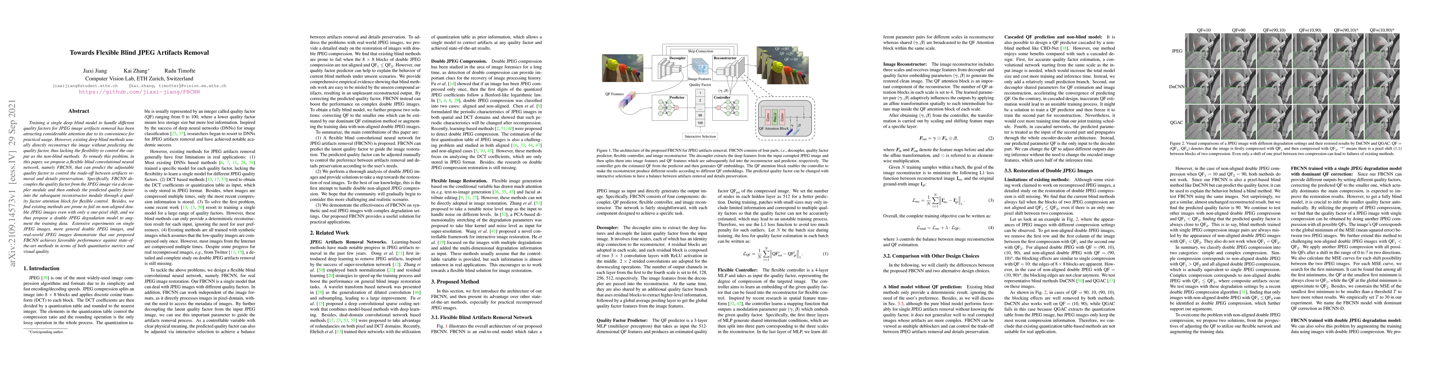 This paper proposes a flexible blind convolutional neural network (FBCNN) to effectively remove JPEG artifacts while allowing adjustable quality control. FBCNN predicts a quality factor to balance artifact removal and detail preservation, outperforming existing methods on single and double JPEG images.