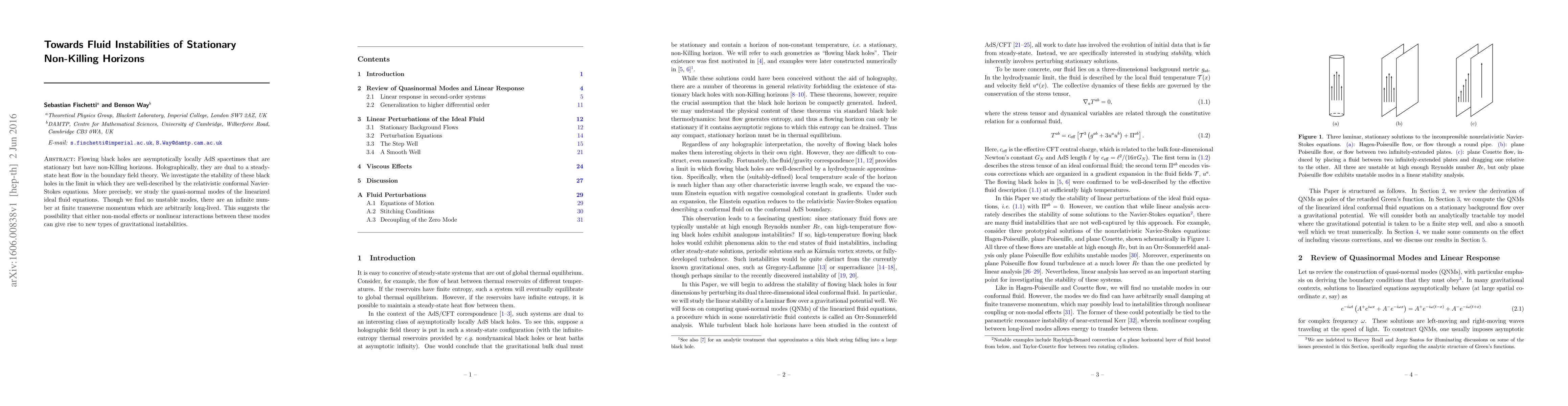 Flowing black holes are asymptotically locally AdS spacetimes that are stationary but have non-Killing horizons. Holographically, they are dual to a steady-state heat flow in the boundary field theory. We investigate the stability of these black holes in the limit in which they are well-described by the relativistic conformal Navier-Stokes equations. More precisely, we study the quasi-normal modes of the linearized ideal fluid equations. Though we find no unstable modes, there are an infinite number at finite transverse momentum which are arbitrarily long-lived. This suggests the possibility that either non-modal effects or nonlinear interactions between these modes can give rise to new types of gravitational instabilities.