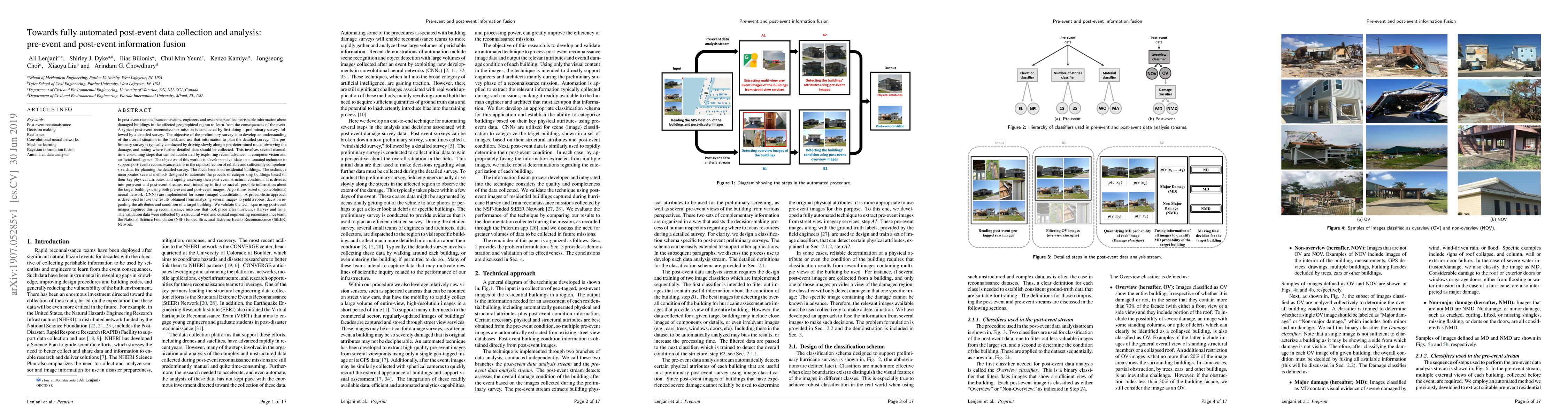 This paper proposes an automated technique leveraging computer vision and AI to expedite post-event reconnaissance data collection, integrating pre-event and post-event information fusion. The method uses CNNs for image classification and probabilistic fusion to assess building conditions, validated using hurricane reconnaissance data.