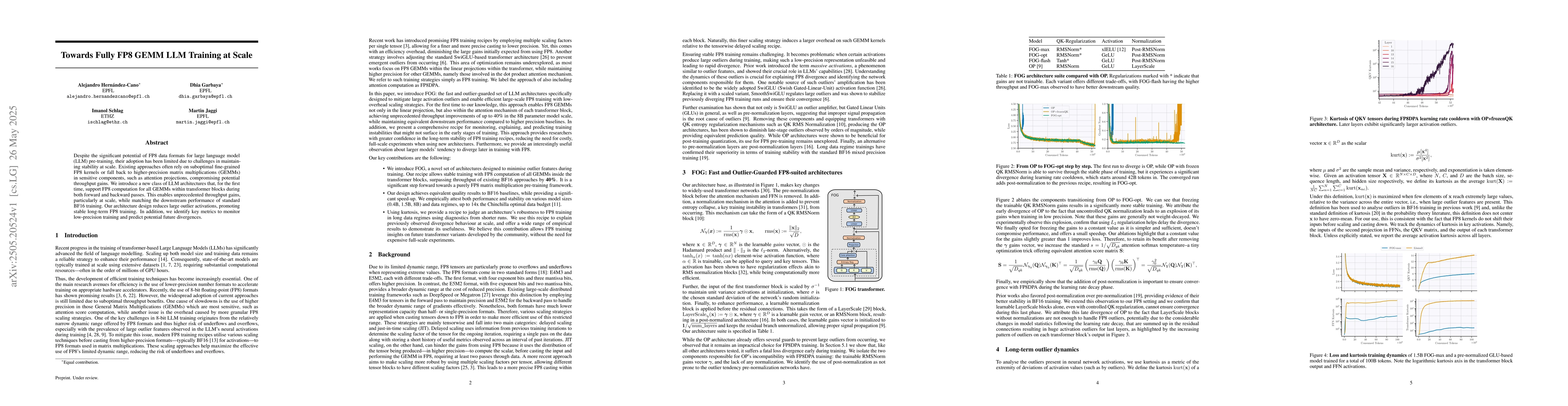 Development of novel LLM architectures that facilitate stable FP8 computation for all GEMMs in transformer blocks.