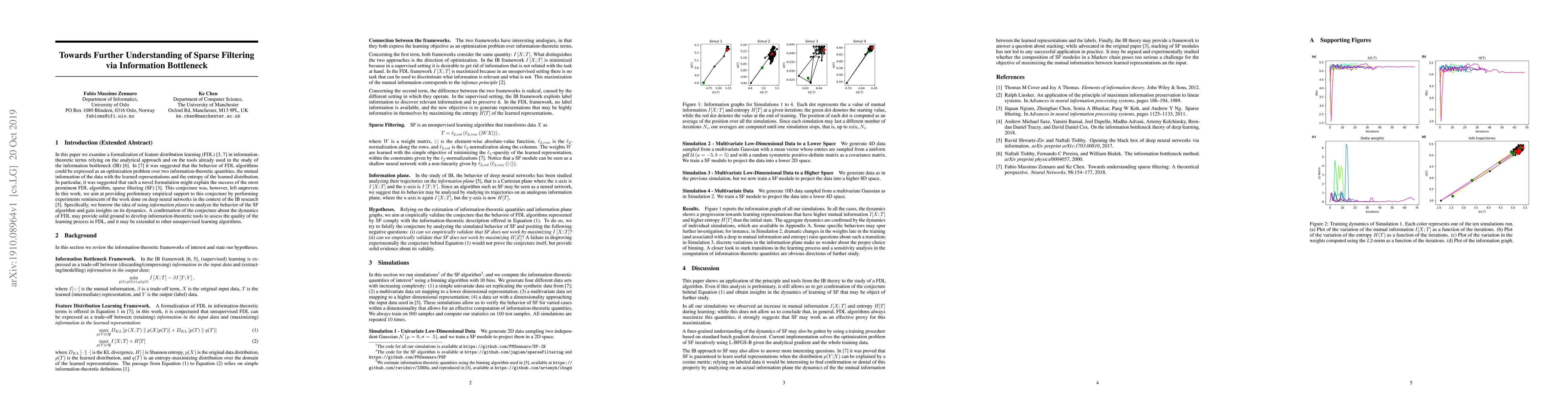 This paper aims to prove that sparse filtering algorithms can be understood through information-theoretic quantities like mutual information and entropy, providing a new perspective on their behavior. The study provides preliminary empirical support for this conjecture and may lead to the development of tools to assess the quality of learning processes in unsupervised algorithms.