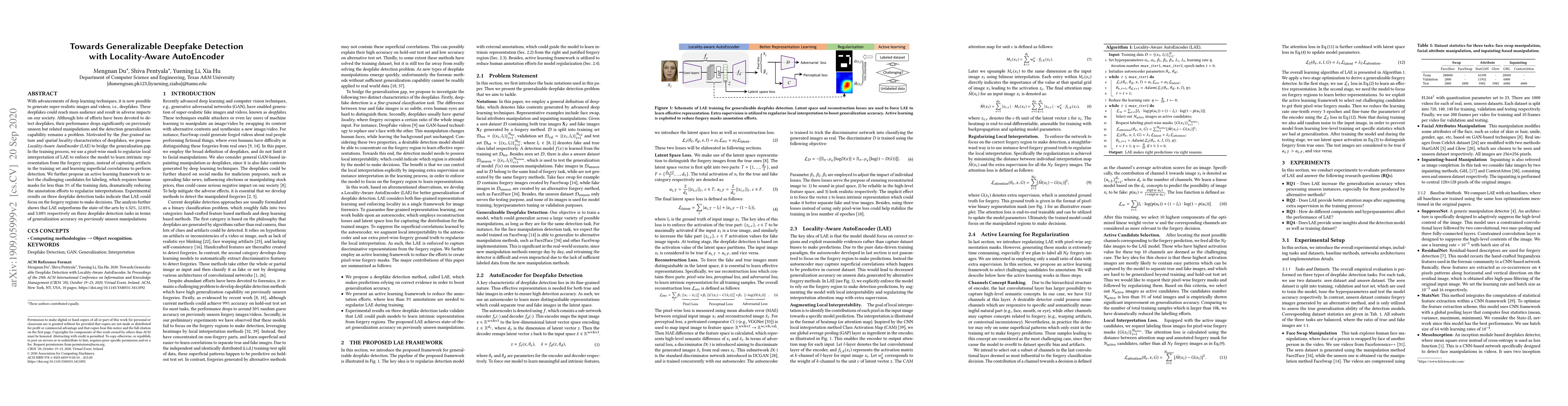 A new deepfake detection method called Locality-Aware AutoEncoder (LAE) improves performance on unseen manipulations by focusing on forgery regions, reducing annotation efforts by 97%.