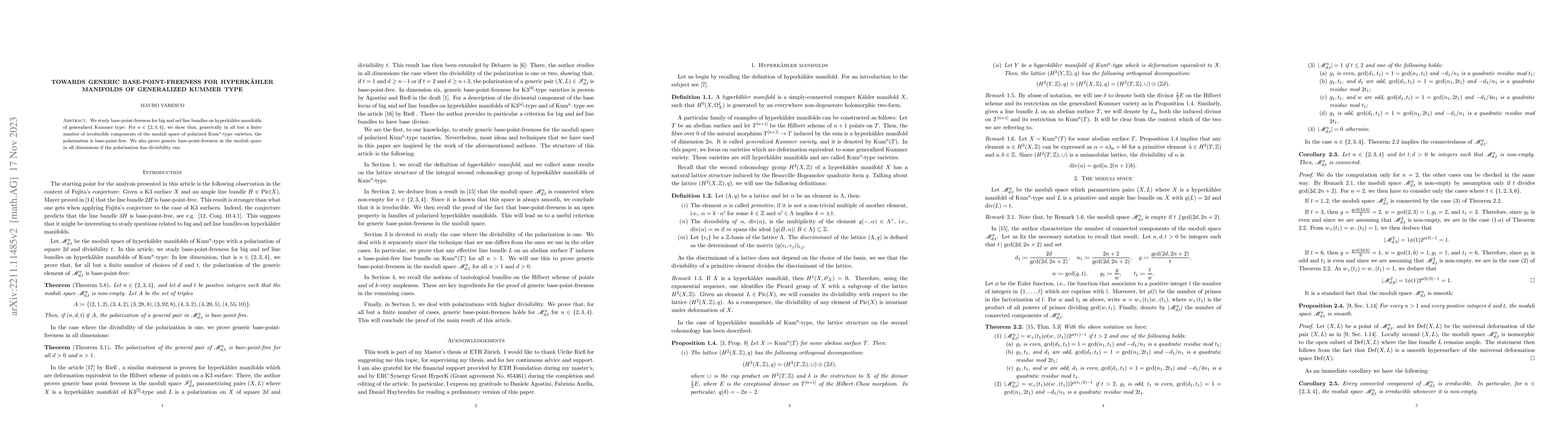This paper investigates base-point-freeness for big and nef line bundles on hyperkähler manifolds of generalized Kummer type, demonstrating that, for $n\in \{2,3,4\}$, the polarization is generically base-point-free in most irreducible components of the moduli space, except for a finite number of cases. Additionally, it proves generic base-point-freeness in all dimensions when the polarization has divisibility one.