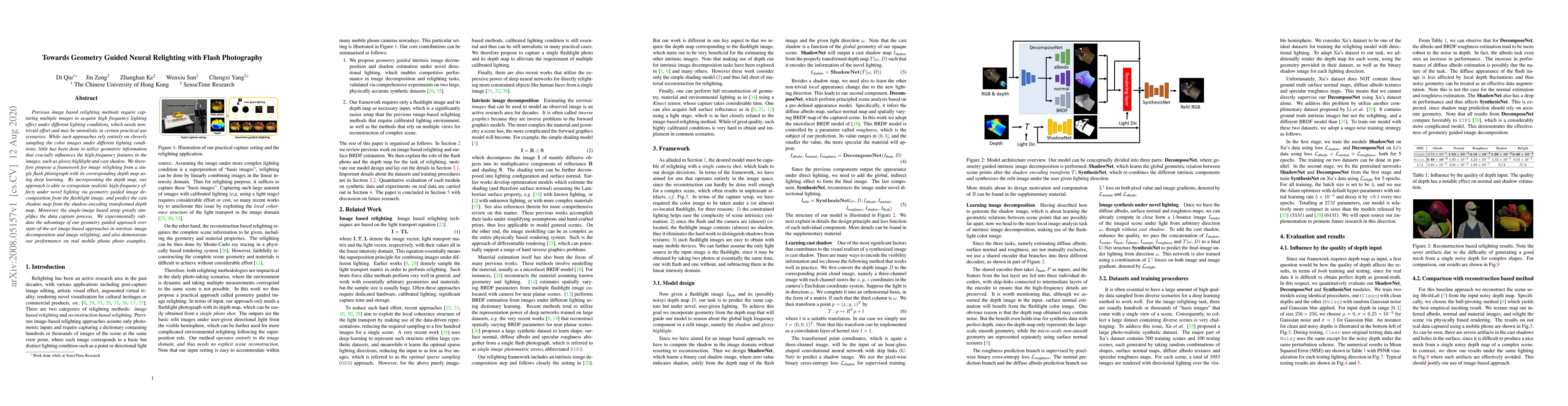 This paper proposes a deep learning framework for relighting a single flash photograph using its corresponding depth map, leveraging geometry to generate realistic high-frequency lighting effects like glossy highlights and cast shadows. The method simplifies data capture by eliminating the need for multiple images and outperforms existing image-based relighting techniques.