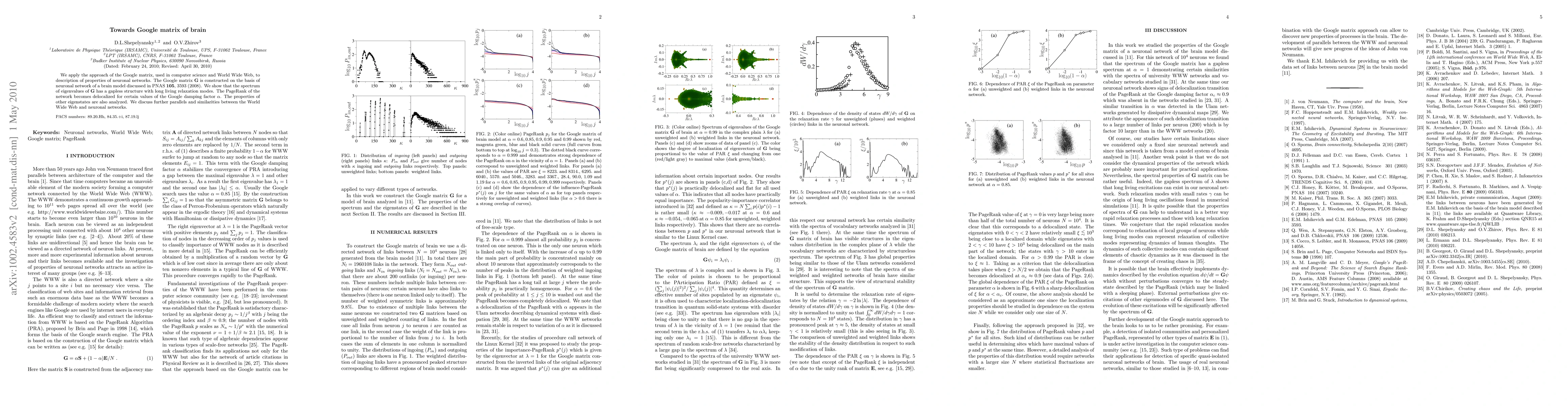 This paper applies the Google matrix concept from computer science to the analysis of neuronal networks, revealing a gapless structure in the eigenvalues and delocalized PageRank under certain damping factors. The study highlights parallels between the World Wide Web and brain networks.